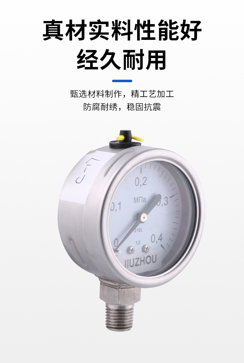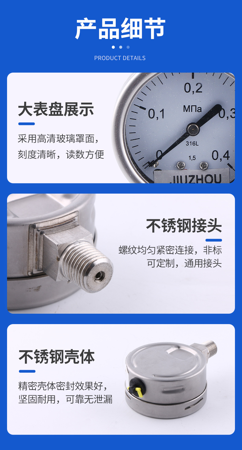 Integrated Radial All-Steel Pressure Gauge (63mm) – Jiuzhou Brand – Oil Filled & Shock Resistant – Replaces 0-2kgf/cm2/psi