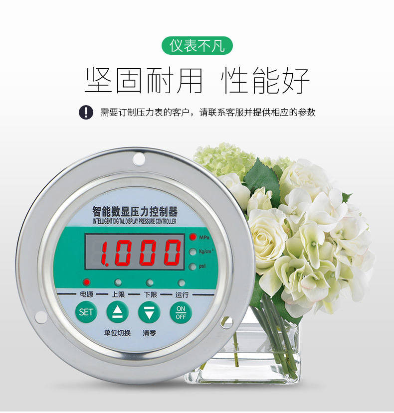 - Key Specs & Performance: Features an intelligent digital display with a broad measurement range of -0.1 to 60 MPa (factory customizable) and 1.6 accuracy class for reliable and high-precision pressure control.