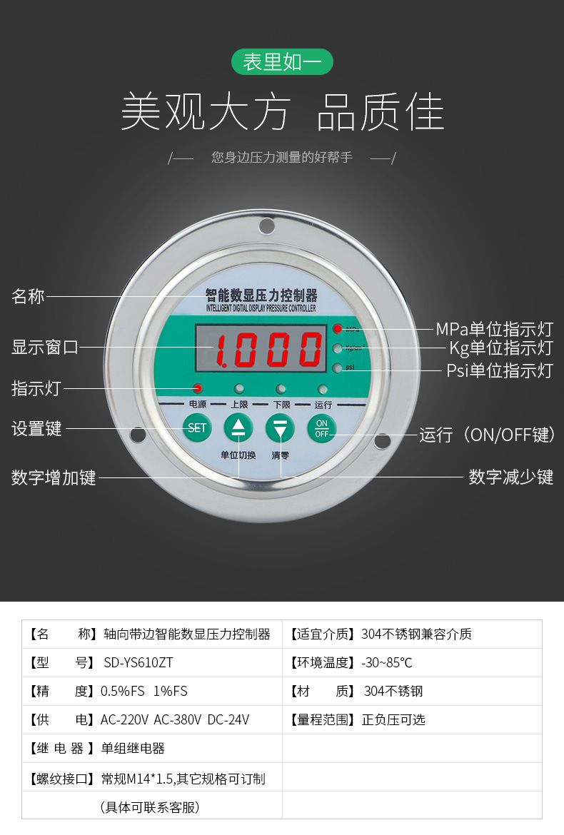 - Wide Compatibility: Specifically designed as the SD-YS610ZT intelligent digital display pressure controller, adaptable for various industrial control systems requiring precise pressure monitoring.
