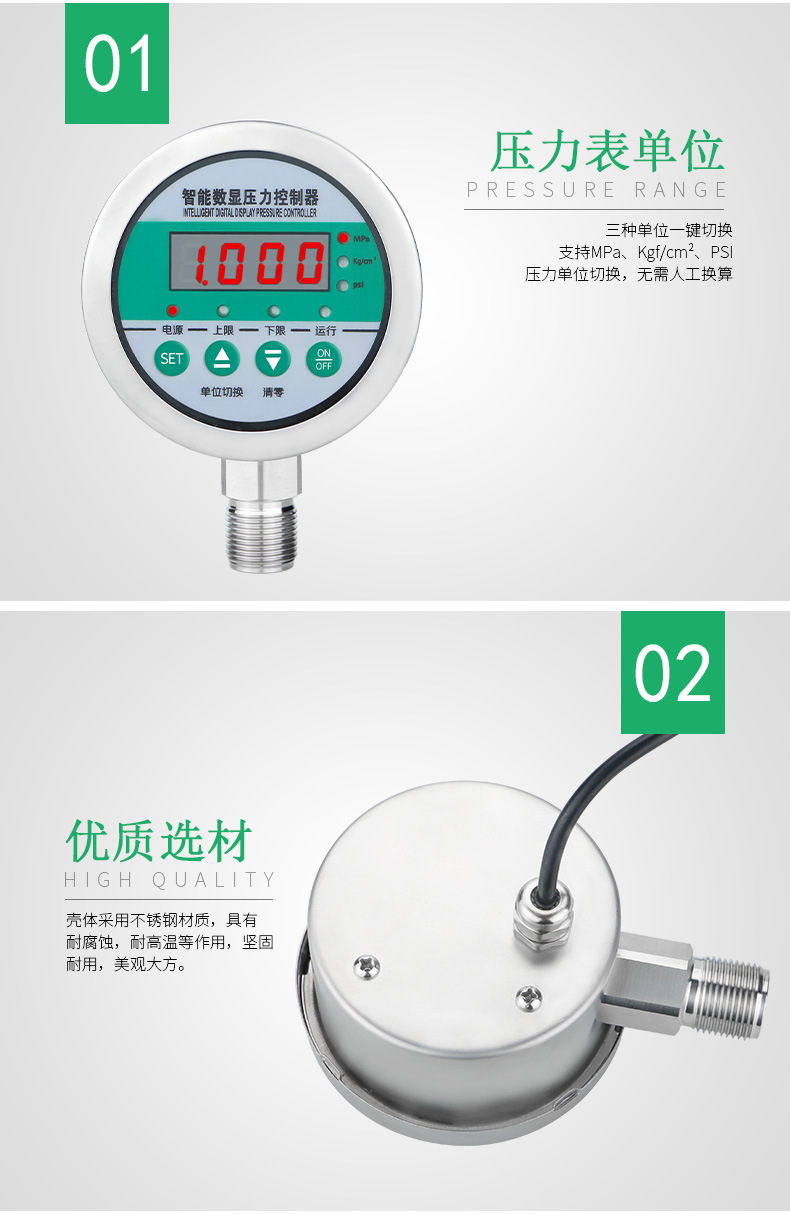 - Key Specs & Performance: Offers a wide measuring range of 0-60 MPA with 1.0 accuracy, providing real-time pressure readings and customizable control settings for optimal operation.