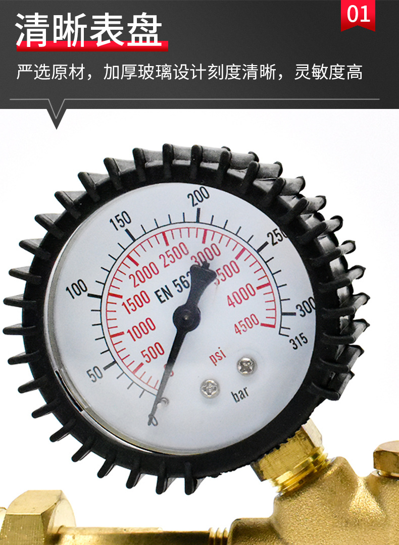 Italian Style CO2 Gas Pressure Reducer Regulator Gauge for Industrial Welding