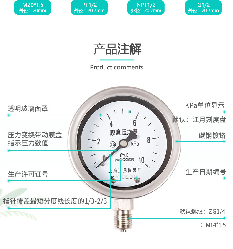 - Wide Compatibility: YE65BF diaphragm pressure gauge designed for various HVAC applications, compatible with systems requiring 0-10 kPa pressure measurement.