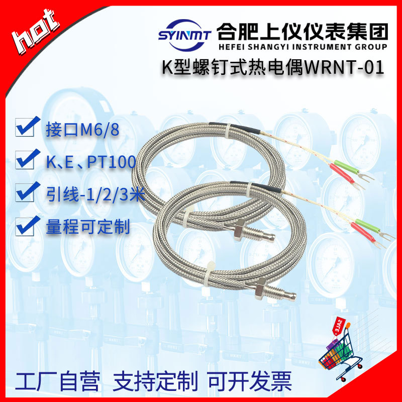 K Type Thermocouple WRNT-01 with M6/M8 Interface and 1/2/3 Meter Lead Wire for High Precision Temperature Sensing, Replaces WRNT-01