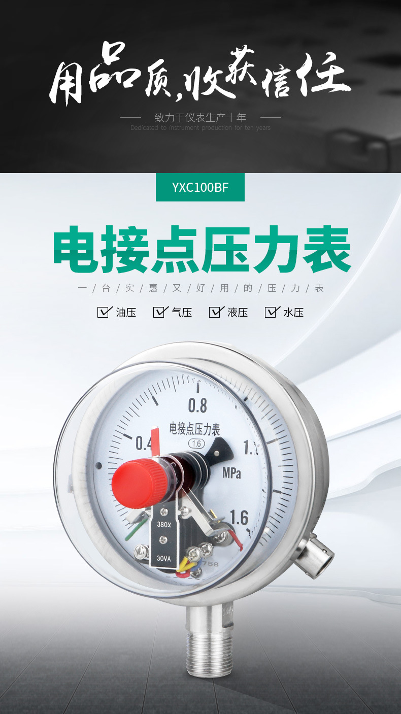 - Wide Compatibility: KAIXUAN YXC100BF electrical contact pressure gauge is versatile for water, gas, oil, and hydraulic systems, offering precise pressure control.