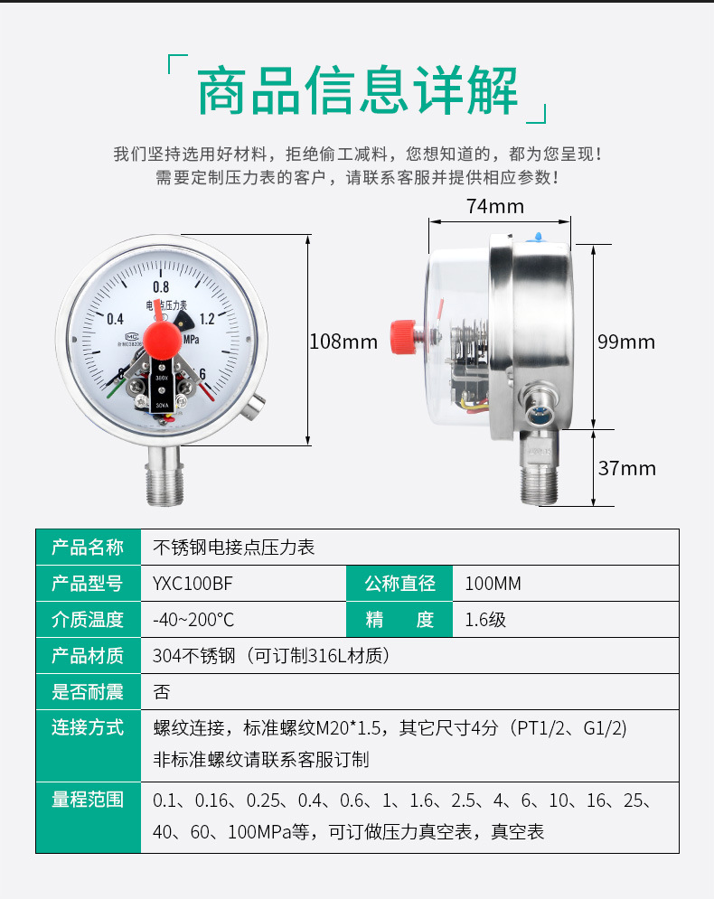 - Key Specs & Performance: Features a measurement range of 0-1.6MPa with a 1.6 accuracy class, 380V and 30VA rating for reliable and stable performance.