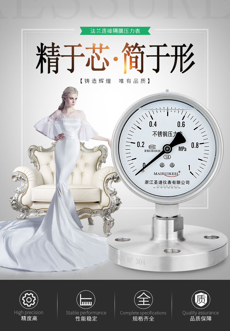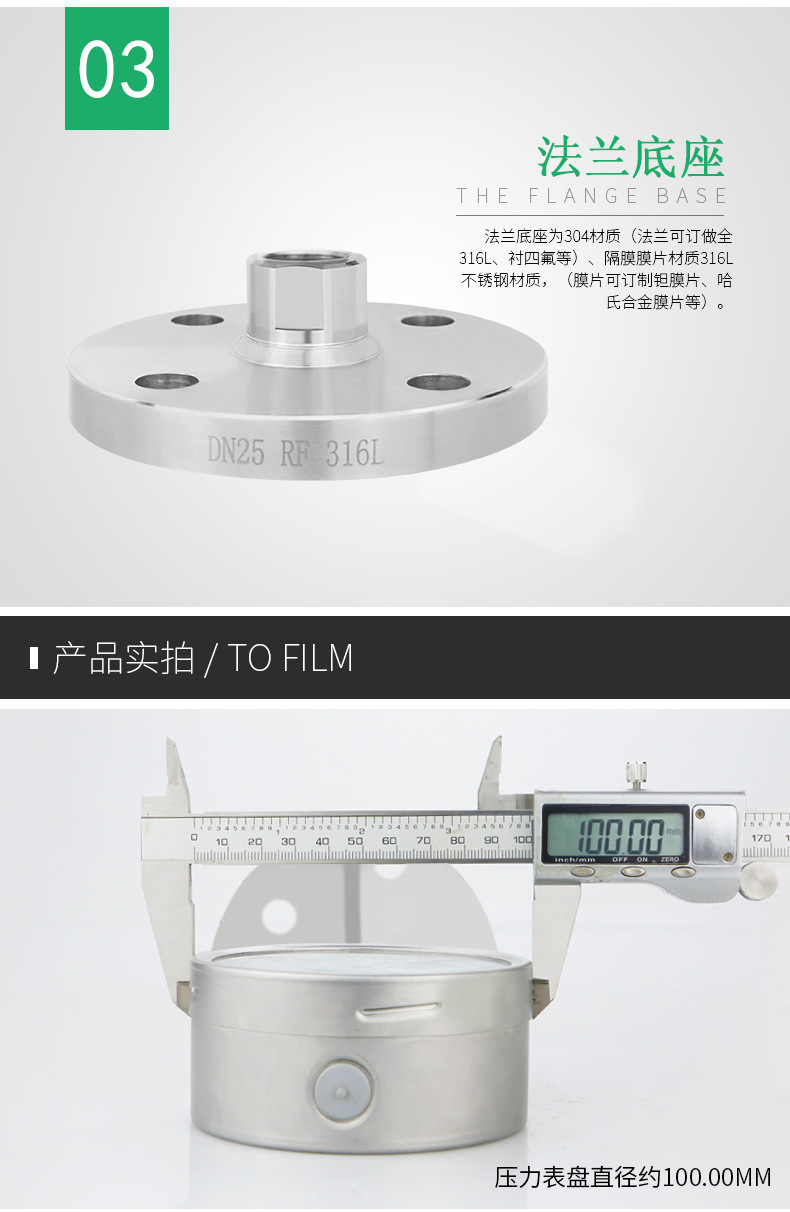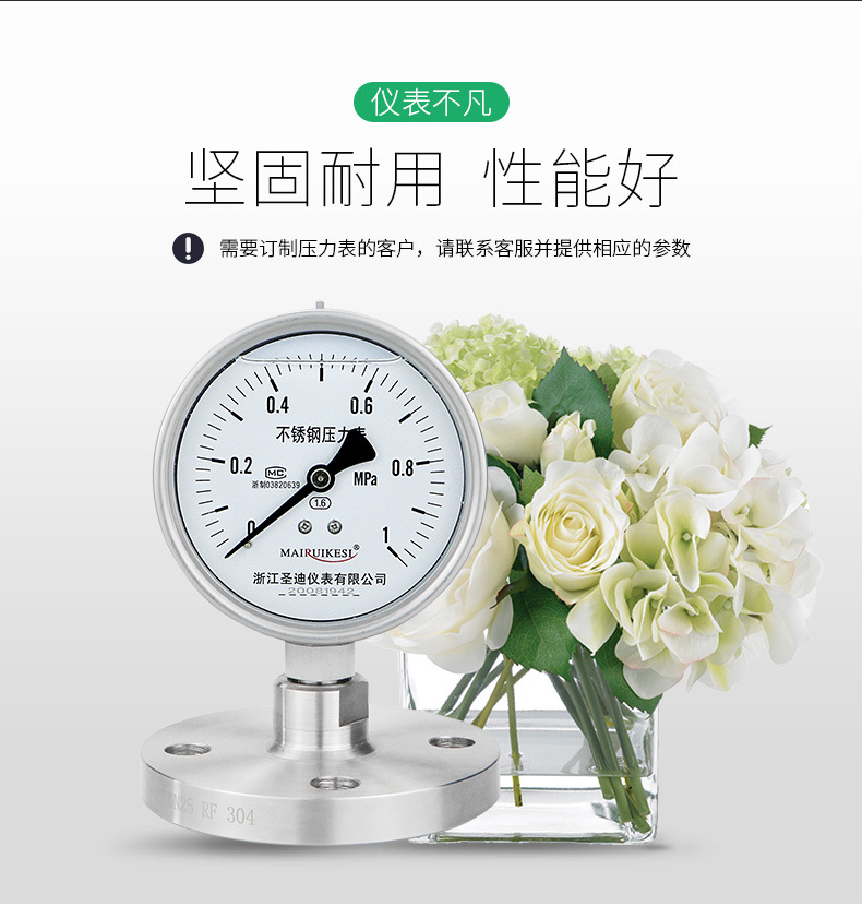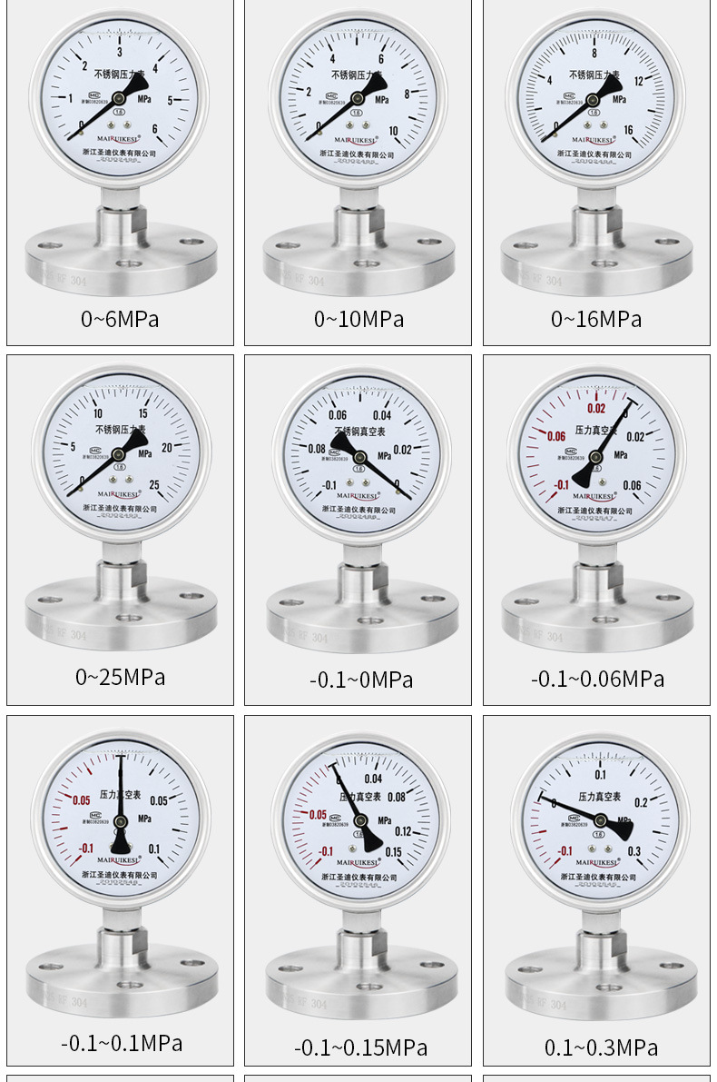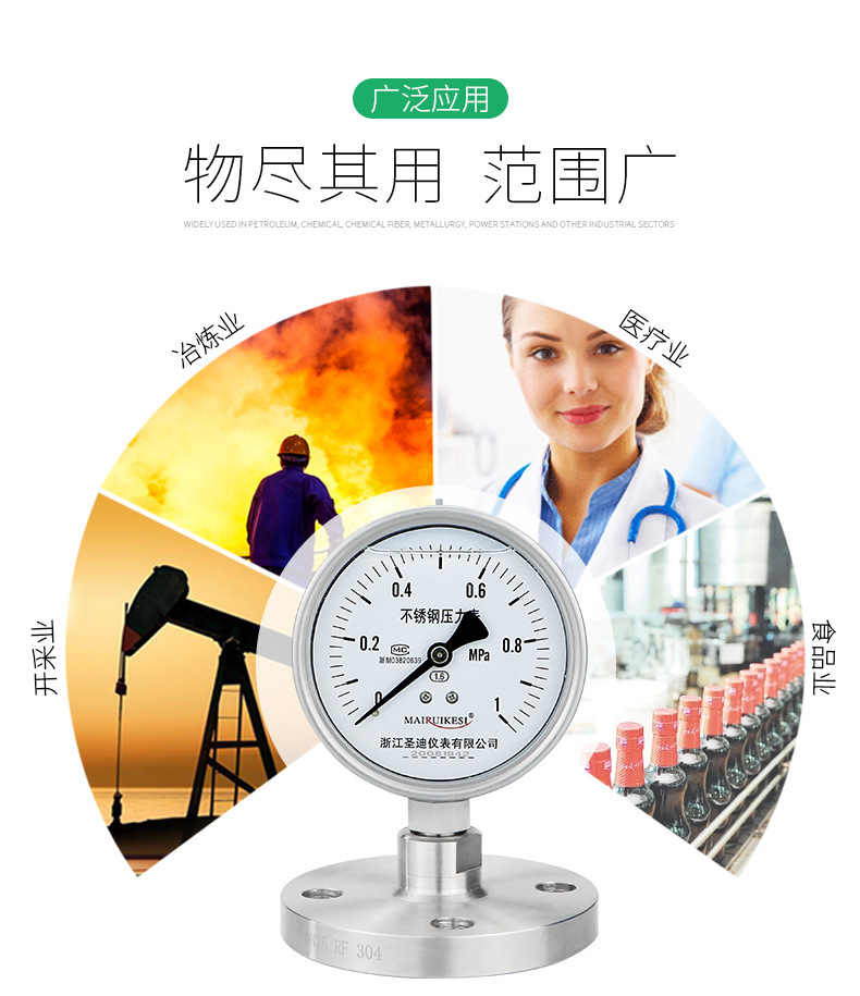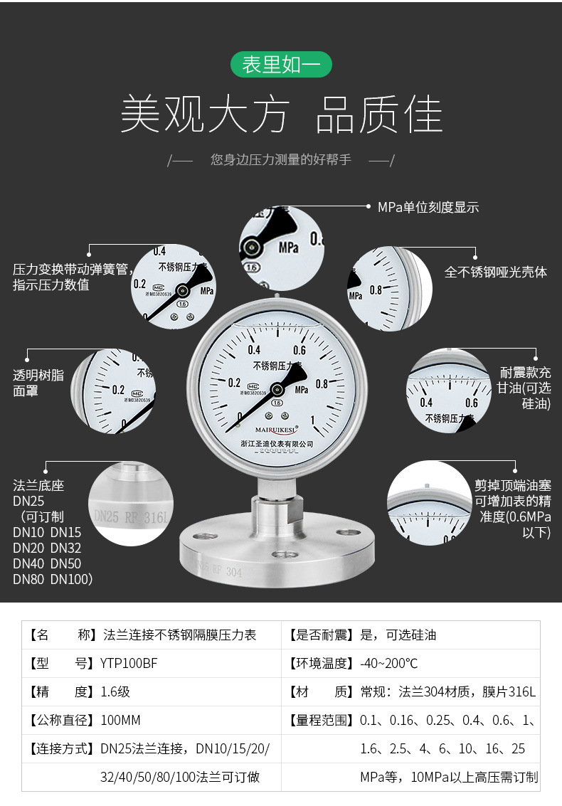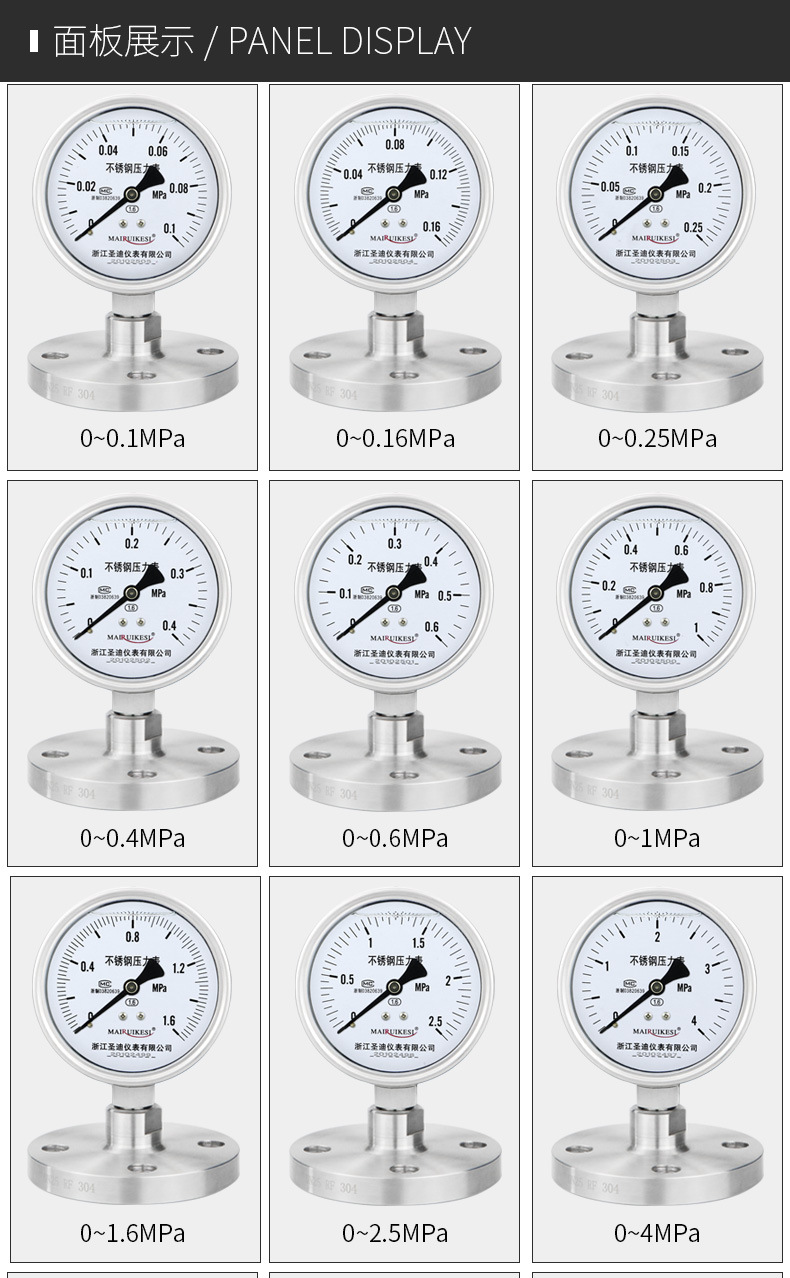- Wide Compatibility: MAIRUIKESI YTP100BF diaphragm pressure gauge with flange connections ranging from DN25 to DN100, designed for versatile industrial applications.