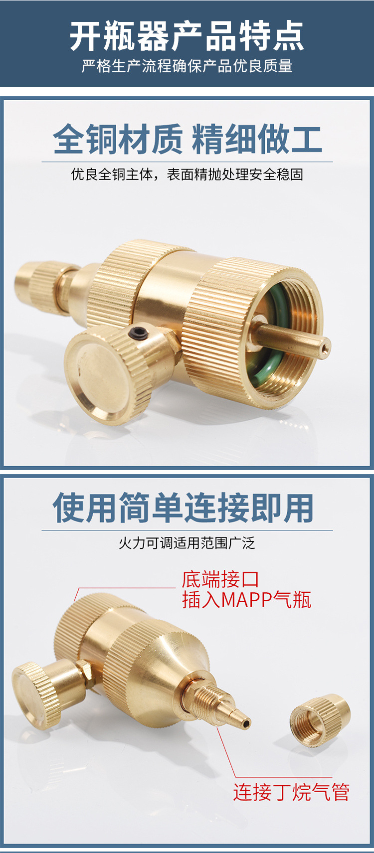 MAPP Gas Cylinder Opening Valve (4mm Interface, Constant Pressure, Anti-Flashback, Flame Adjustment) for MAPP Gas Welding Torch