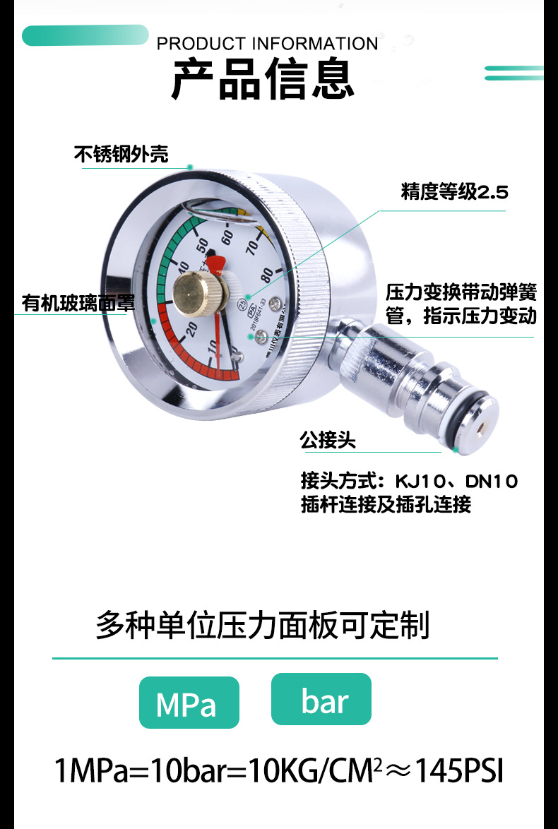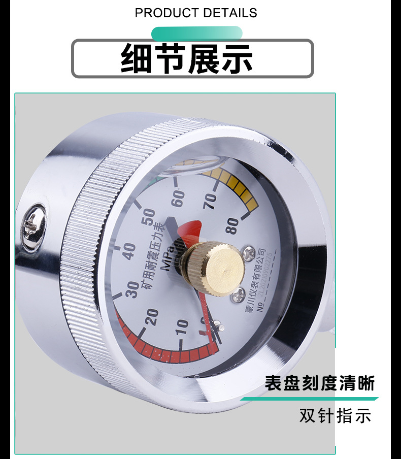 - Key Specs & Performance: Clearly displaying readings from 0-80 MPa, with key ranges highlighted at 40MPa and 80MPa, it provides precise pressure monitoring critical for operational safety and efficiency in various systems. It has CE and ISO9001 certifications.