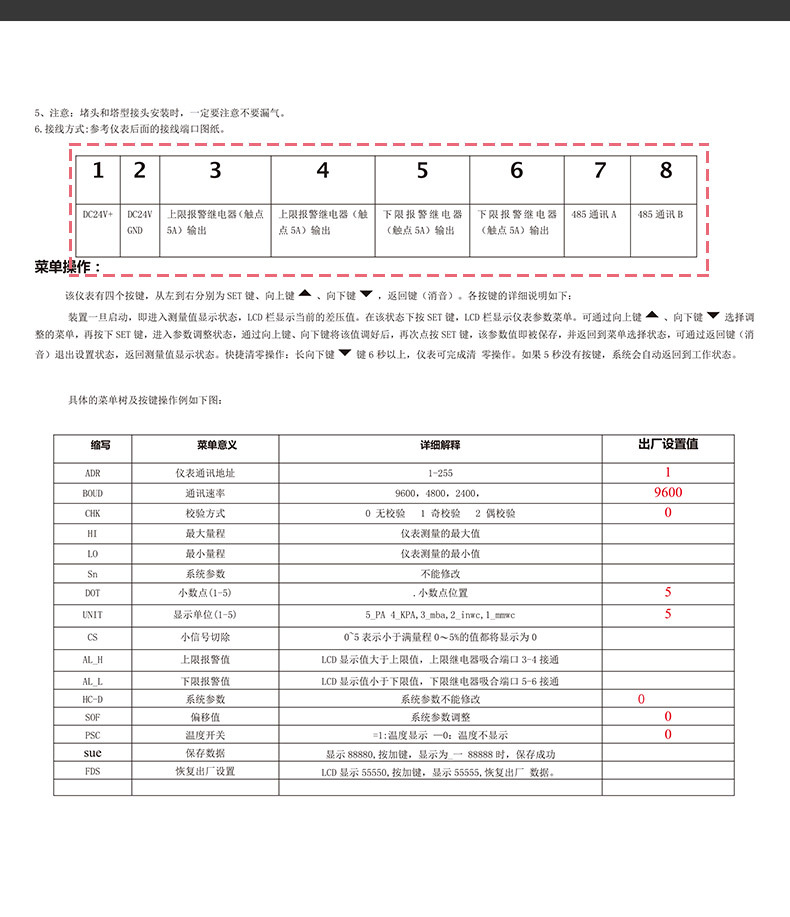- Key Specs & Performance: Features high accuracy of 1% for precise positive and negative pressure difference measurements. Equipped with upper and lower limit alarms, ensuring real-time monitoring and safety.
