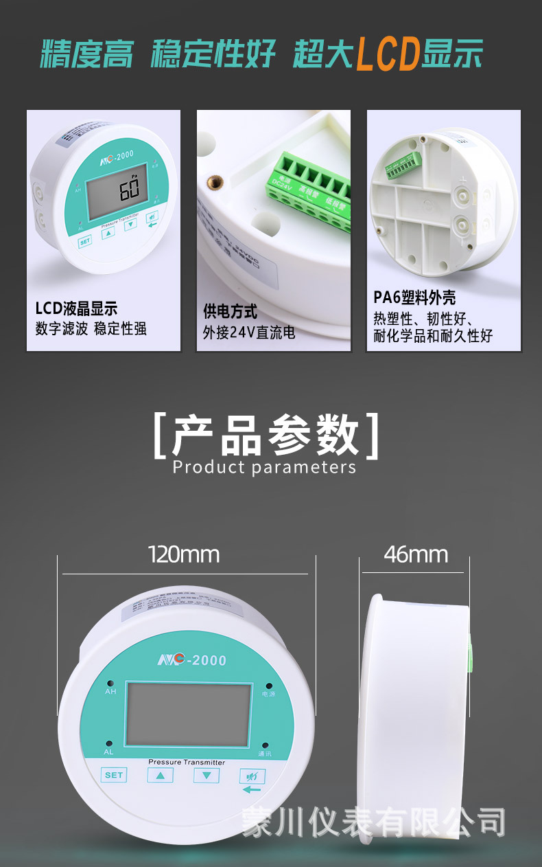 MENGCHUAN Instrument Digital Micro Differential Pressure Transmitter (Model AVC-2000, 0-60Pa to 0-3000Pa / ±60Pa to ±3000Pa, 1% Accuracy, 485 Communication, Upper/Lower Limit Alarm) for HVAC Systems