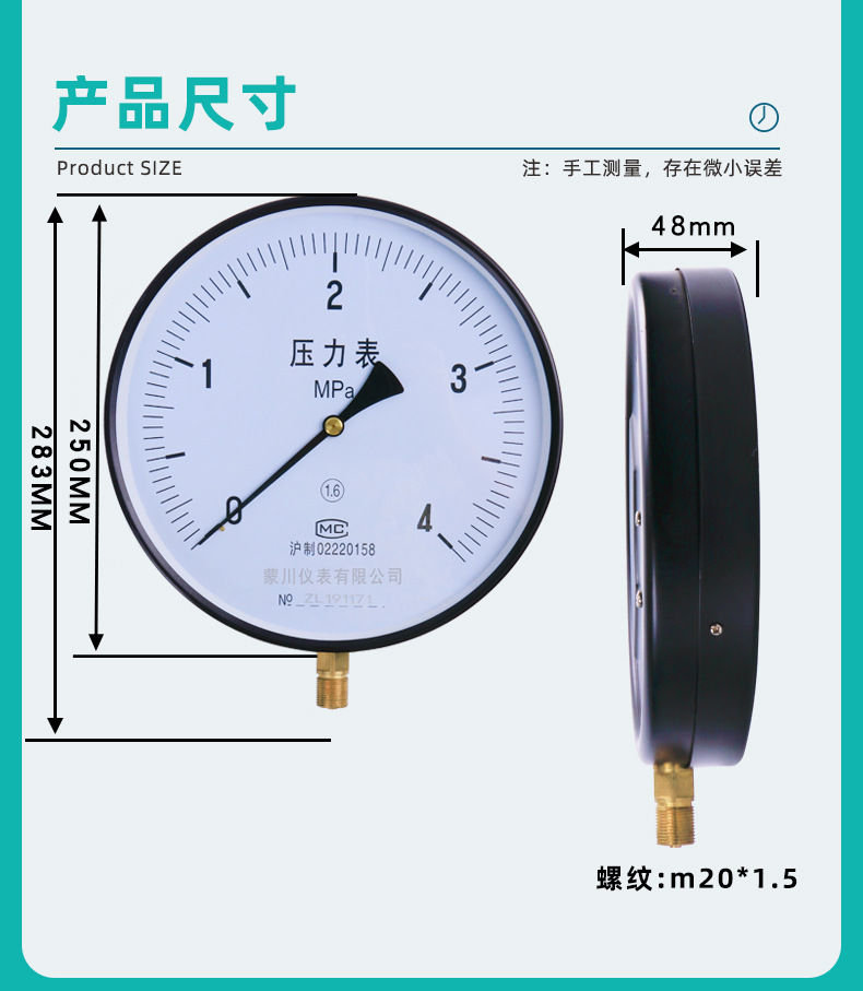 MENGCHUAN Y250 General Pressure Gauge (0-4 MPa, 1.6 Accuracy) for Water, Gas, Oil Pressure, HVAC Systems