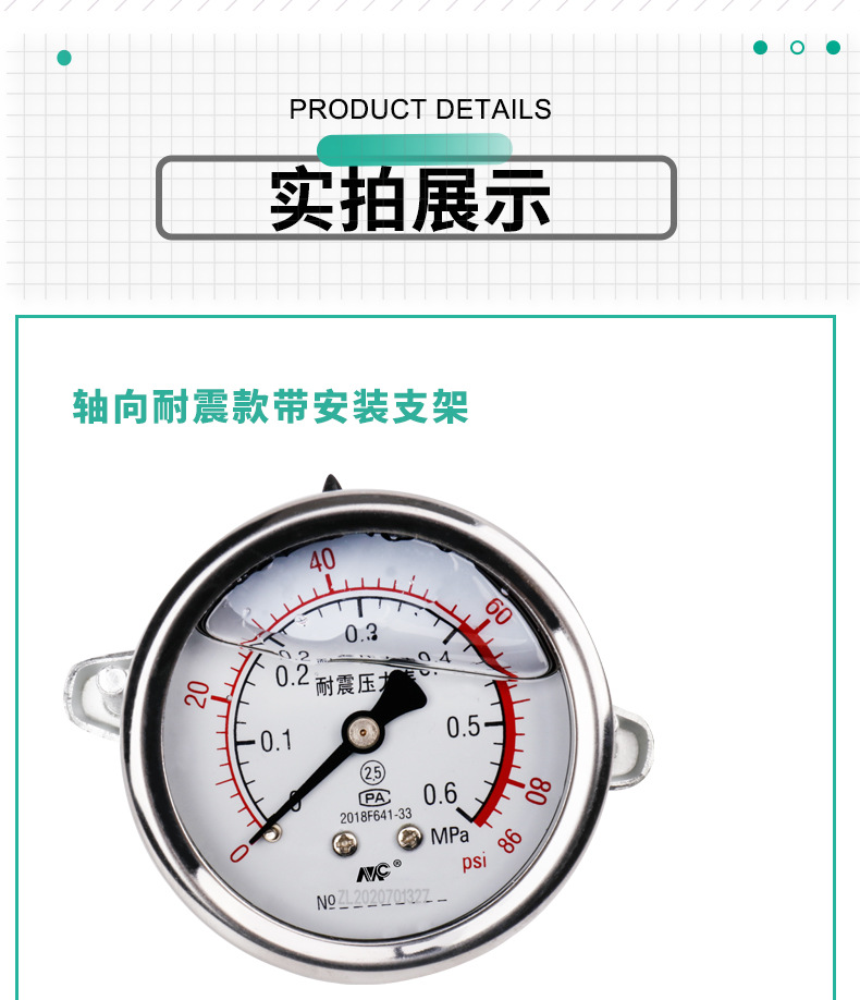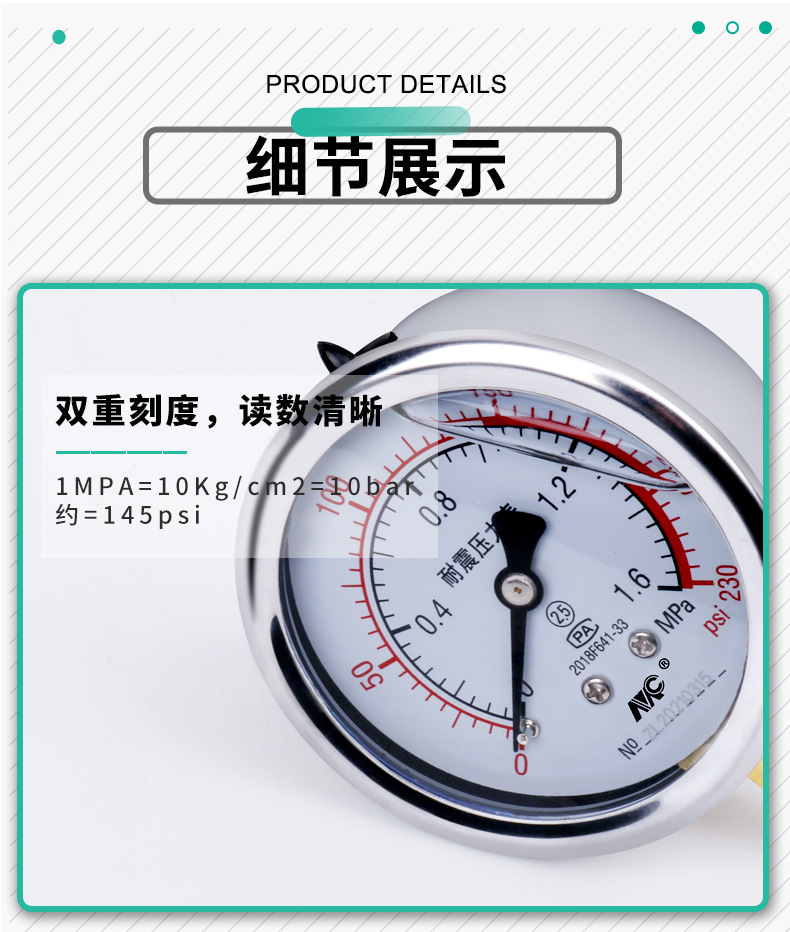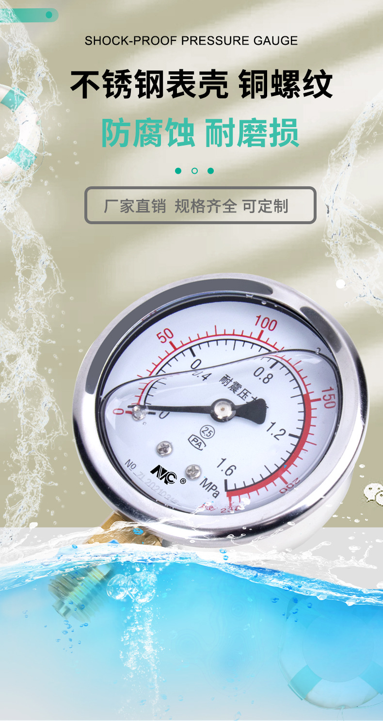 - Wide Compatibility: Ideal for water pressure, air pressure, oil pressure, floor heating pressure testing, and various mechanical equipment.