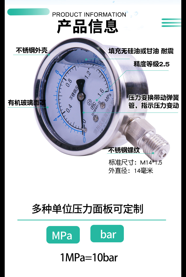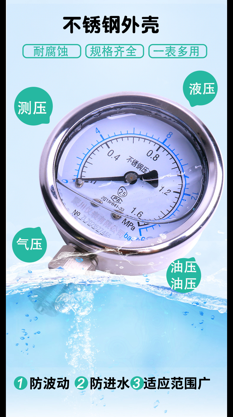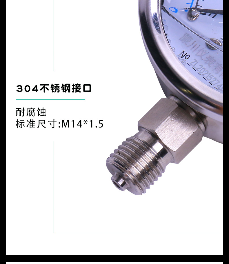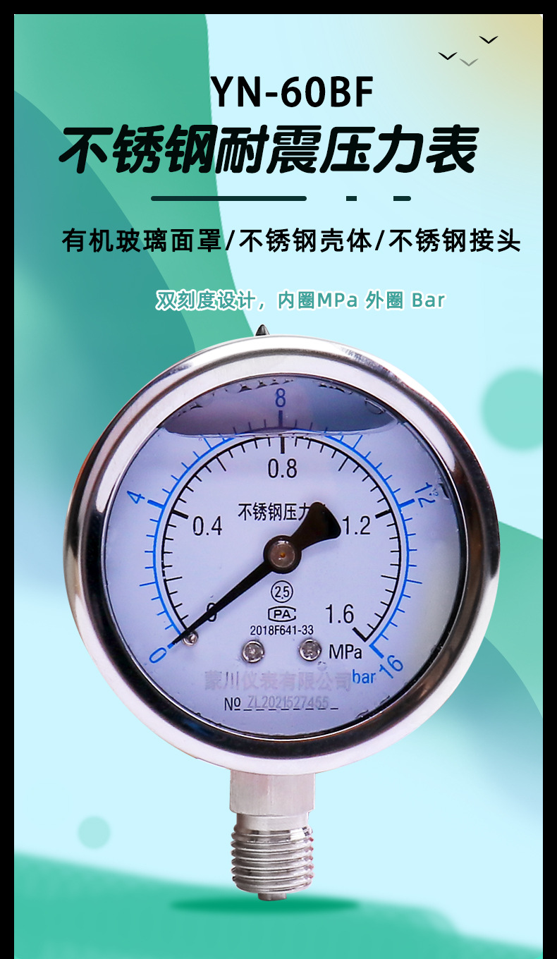 MENGCHUAN YN60BF Stainless Steel Shock-Resistant Pressure Gauge (0.1-100 MPa) for Water Gas Oil HVAC Systems