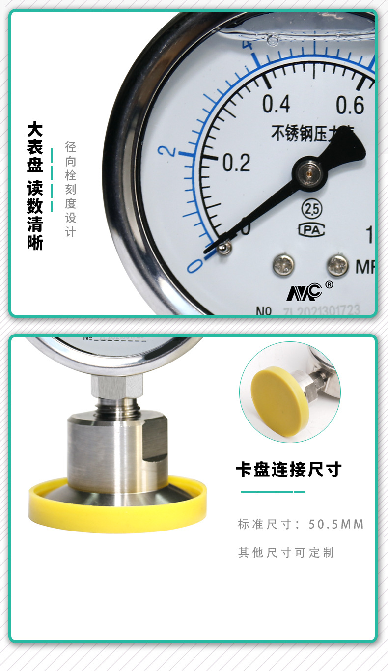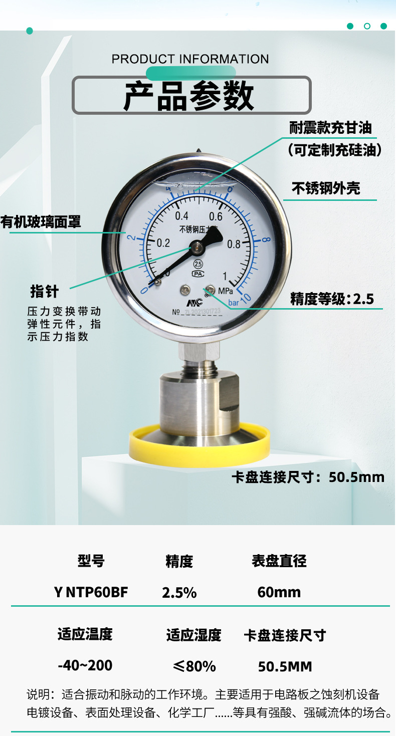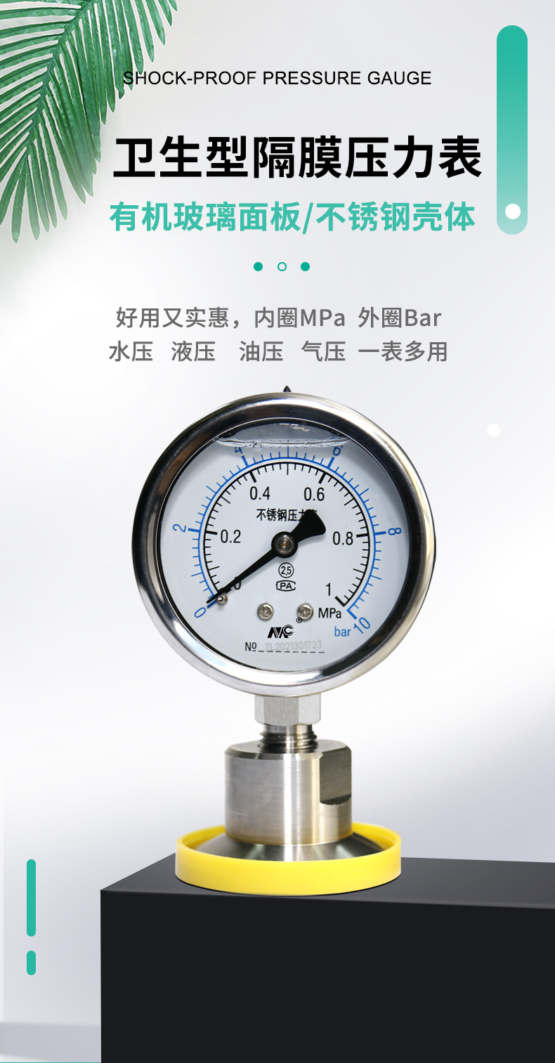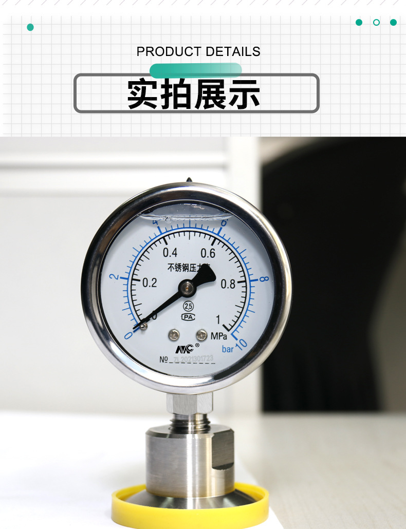 MENGCHUAN YNTP-60BF Diaphragm Pressure Gauge (0.1MPa-4MPa, -0.1MPa-2.4MPa) Stainless Steel Sanitary Clamp Connection for Food Industry