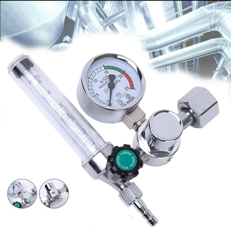 Argon Gas Pressure Regulator with Dual Flow Meters for Welding, Single Stage Pressure Reducer, 0-25 MPa
