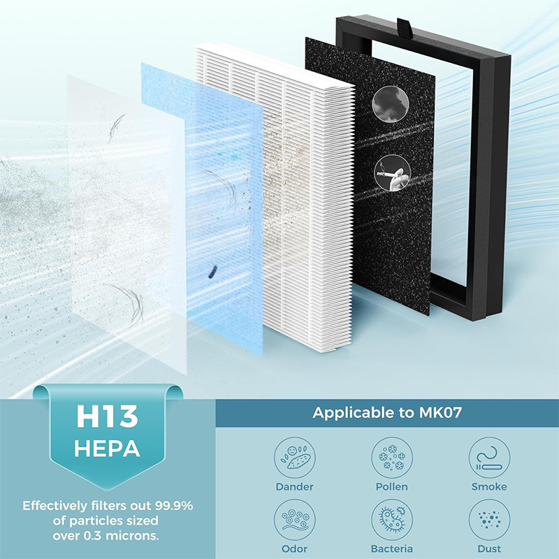 - What You Get: Includes one genuine H13 TRUE HEPA 4-Stage Filter for MK07/MK07W, ensuring cleaner air and a healthier living environment.