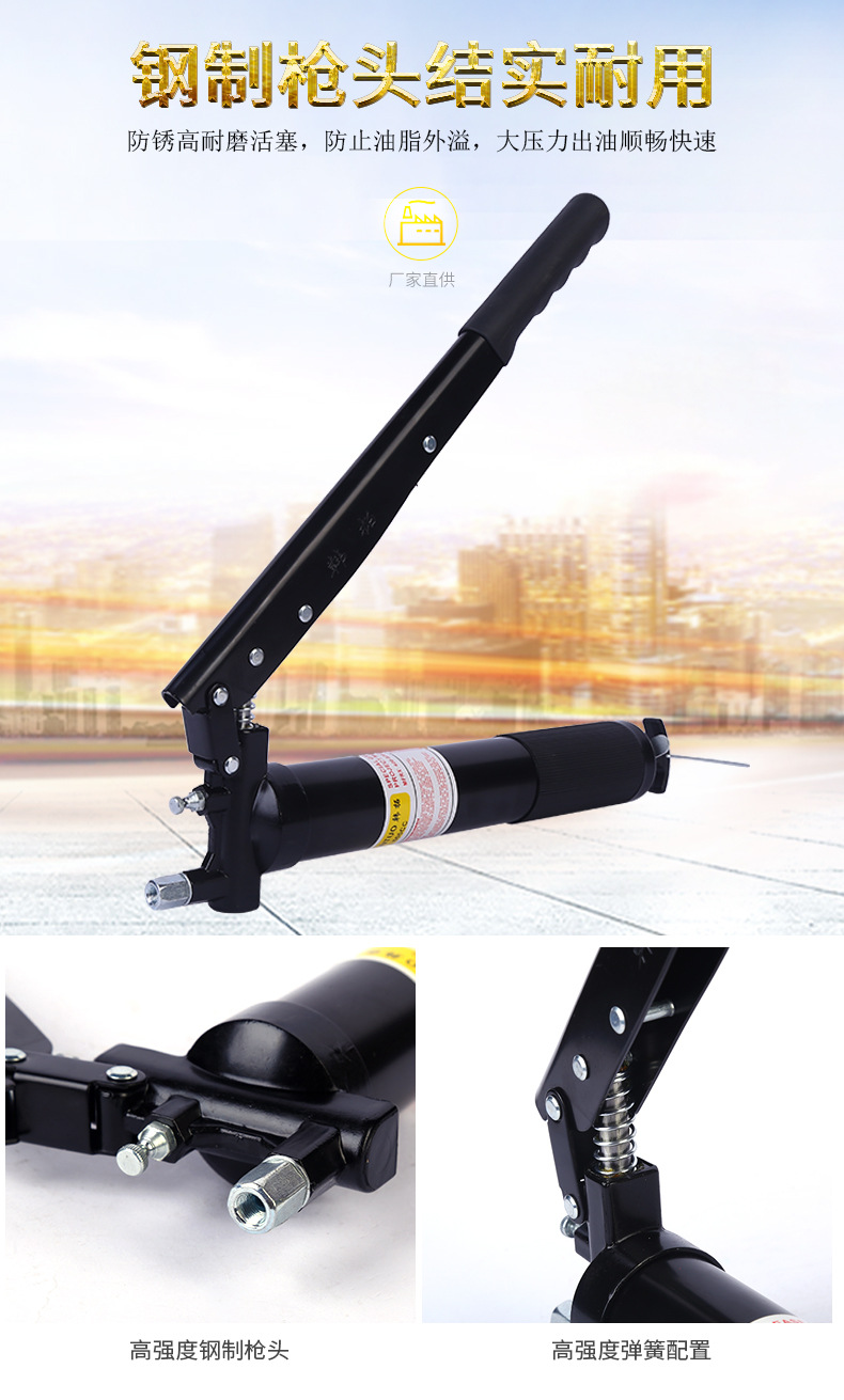 Manual Grease Gun 600cc Heavy Duty Hand Operated Grease Pump with Steel Tip and Thickened Spring for Excavators and Engineering Machinery