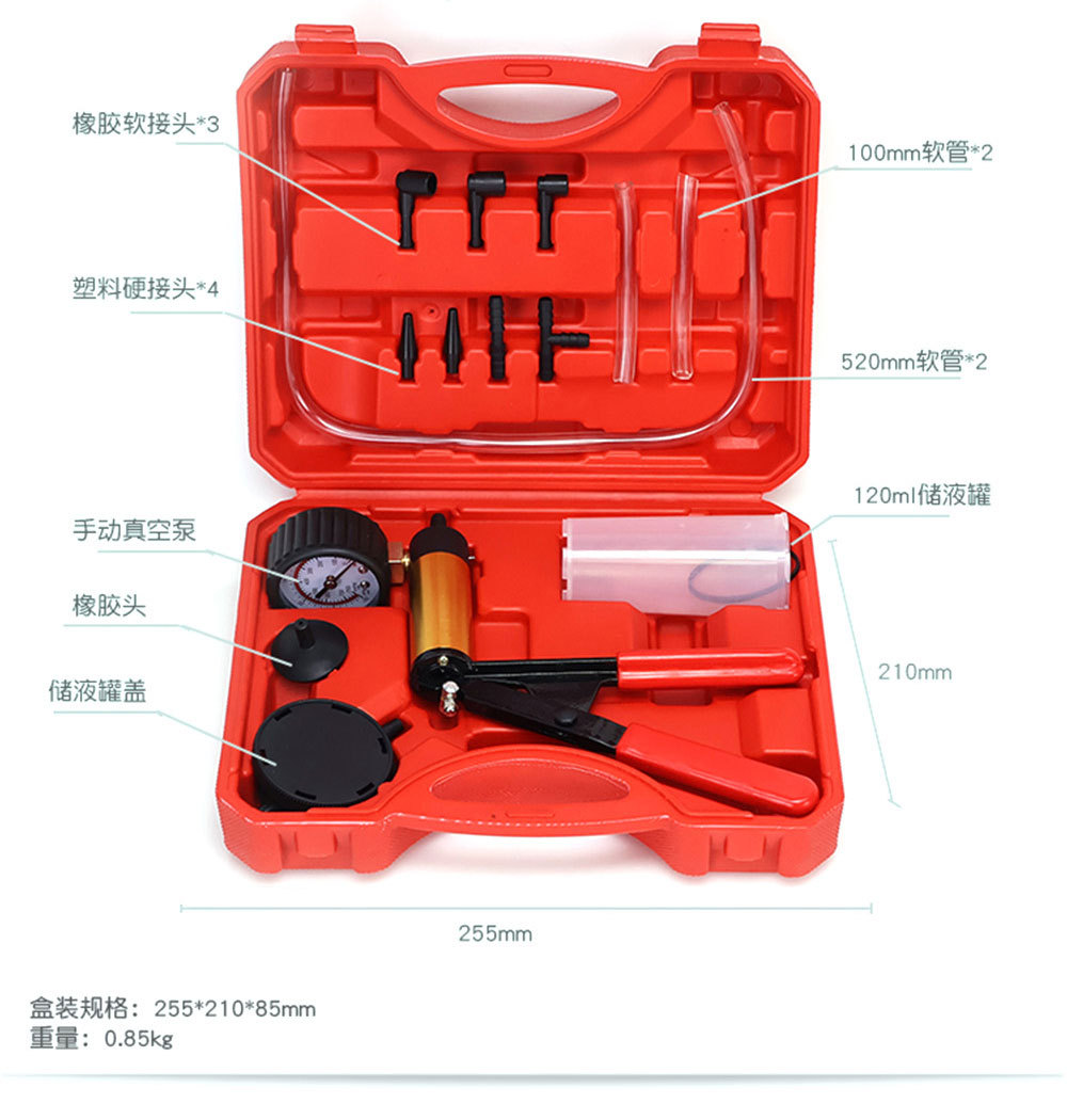 - What You Get: One complete manual vacuum pump kit with all necessary accessories, perfect for various automotive fluid and vacuum system maintenance. Supported by quality assurance for peace of mind.