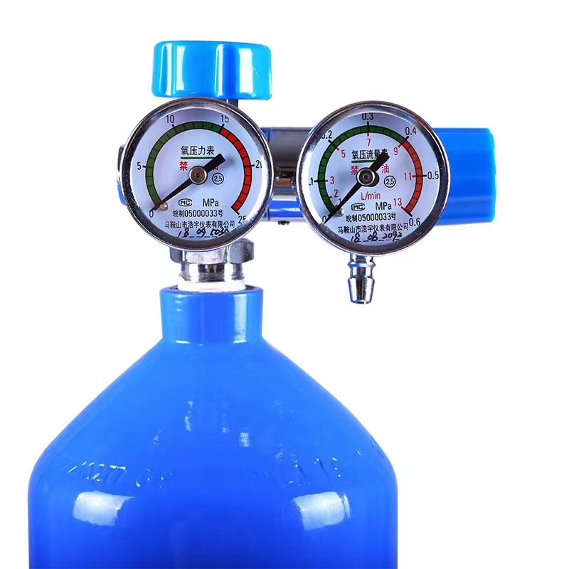 Medical Oxygen Cylinder Pressure Reducer Valve (0-25MPa, 1-15L/min) with Dual Gauges for 10L, 4L, 2L Portable Oxygen Tanks