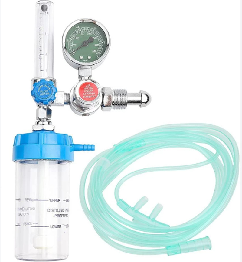 Medical Oxygen Flowmeter & Regulator Kit (0-25 MPa, 1-15 L/min) with Buret and Nasal Cannula for Oxygen Therapy Systems