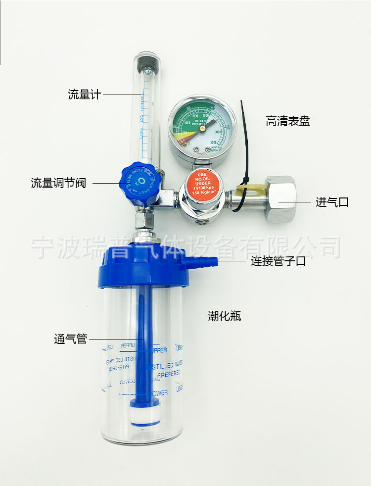 Medical Oxygen Flowmeter Regulator for Cylinder, 0-15L/min Floater Type Inhaler with Pressure Gauge, OEM Available