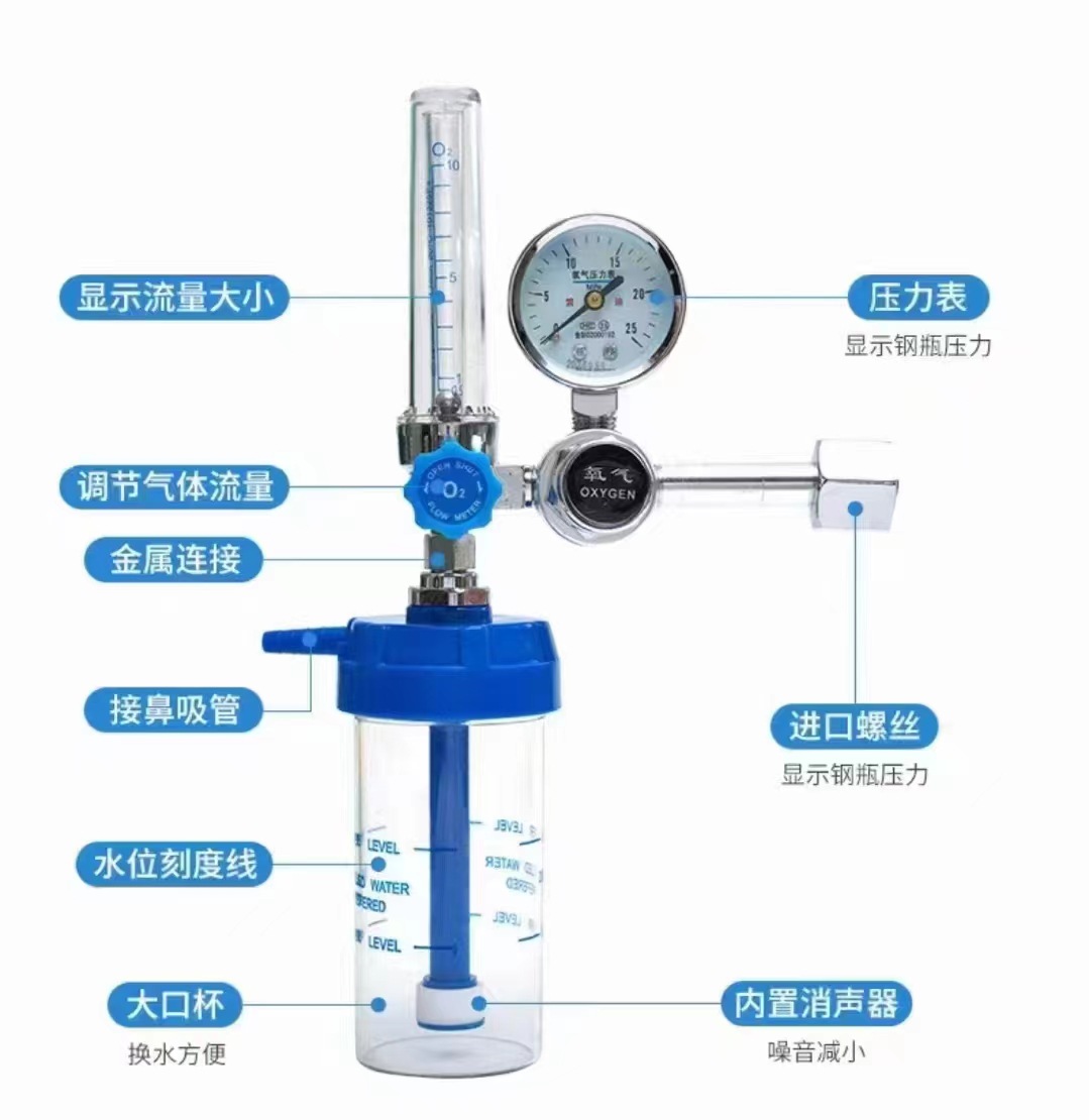 Medical Oxygen Inhaler Flowmeter Pressure Reducer (0-25 MPa, 1-15 L/min) for Oxygen Cylinder Regulator