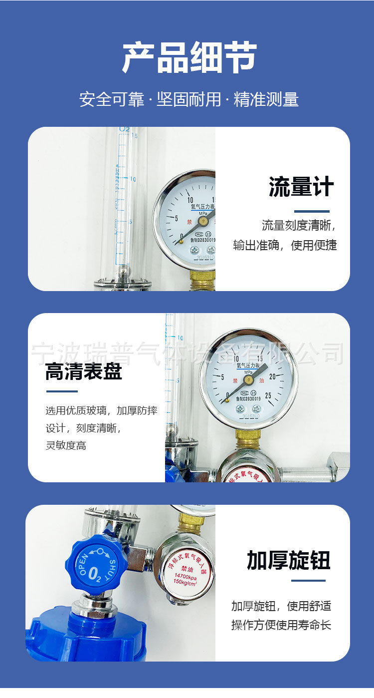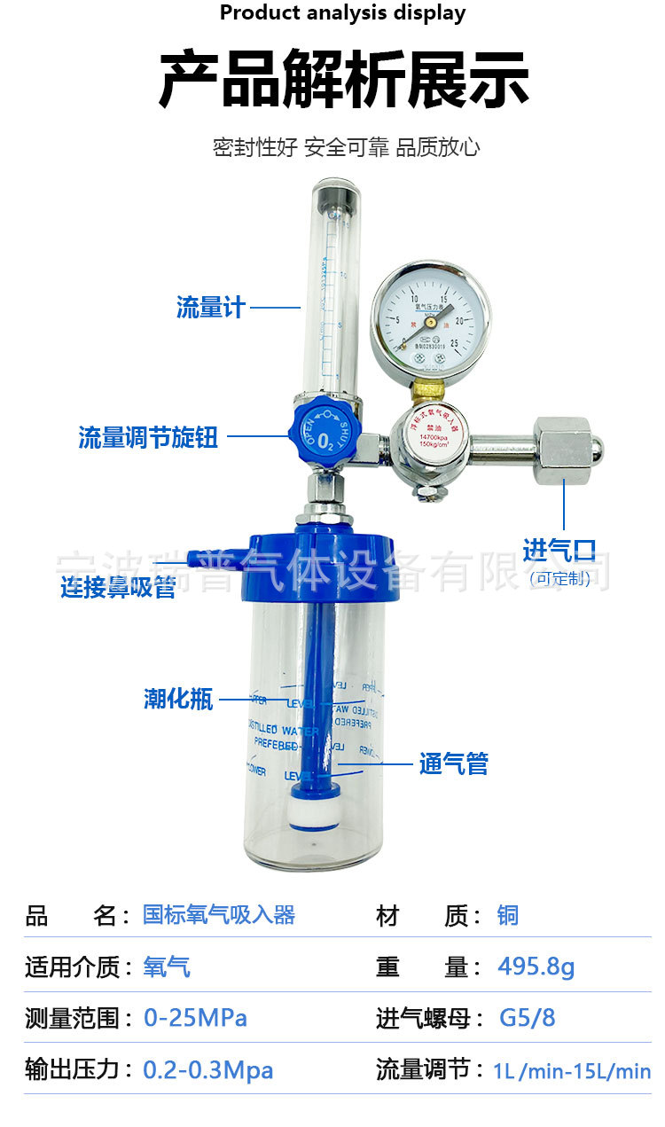 - Integrated Pressure Reduction: Equipped with a robust pressure-reducing valve, ensuring stable and safe oxygen output pressure between 0.2-0.3 MPa.