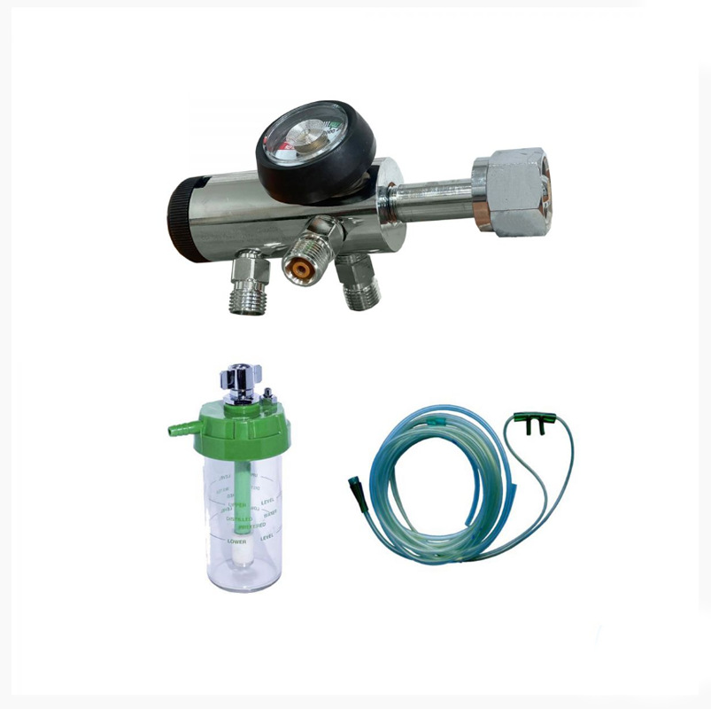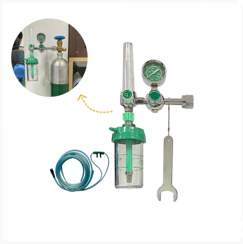 Medical Oxygen Regulator Flow Meter Pressure Gauge with Humidifier Bottle and Nasal Cannula for Oxygen Cylinder