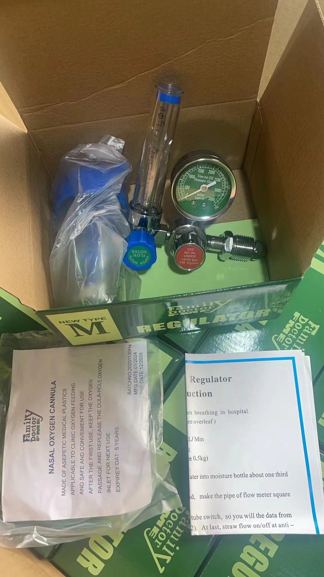 - What You Get: Includes one oxygen regulator with integrated flowmeter and pressure gauge, one humidifier bottle, and one nasal oxygen cannula as pictured, ready for setup.