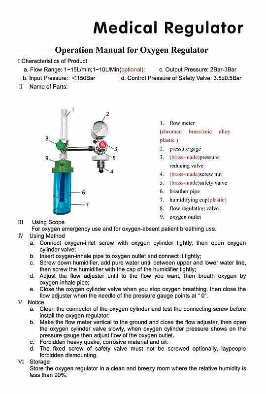 - Key Specifications: Features an oxygen flow range of 0-15 L/min and a pressure gauge with dual scales up to 4000 PSI and 240 Kg/cm², ensuring precise oxygen delivery and monitoring.