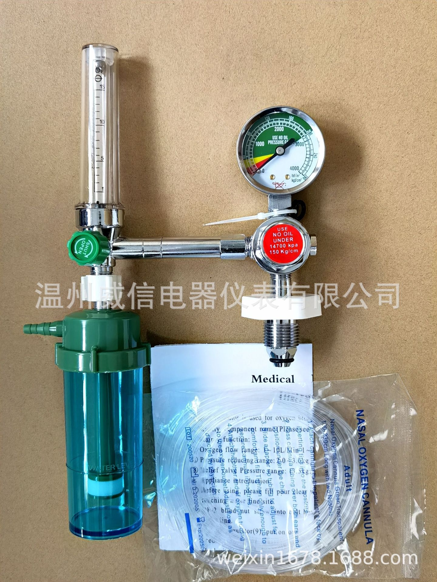 - Integrated Design: This single-stage oxygen pressure reducer comes with an integrated flow meter and pressure gauge for convenient and accurate control of oxygen supply for respiratory therapy.