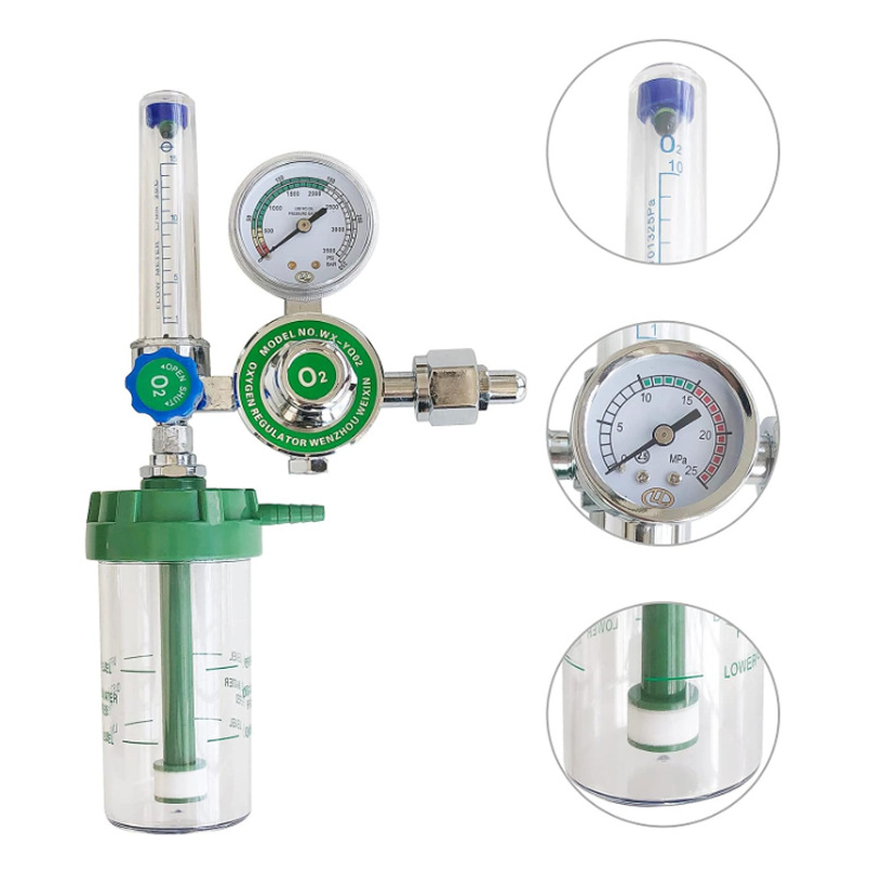 Medical Oxygen Regulator with Flow Meter & Humidifier Bubble Bottle for O2 Tank and Nasal Cannula, Model WX-YQ02