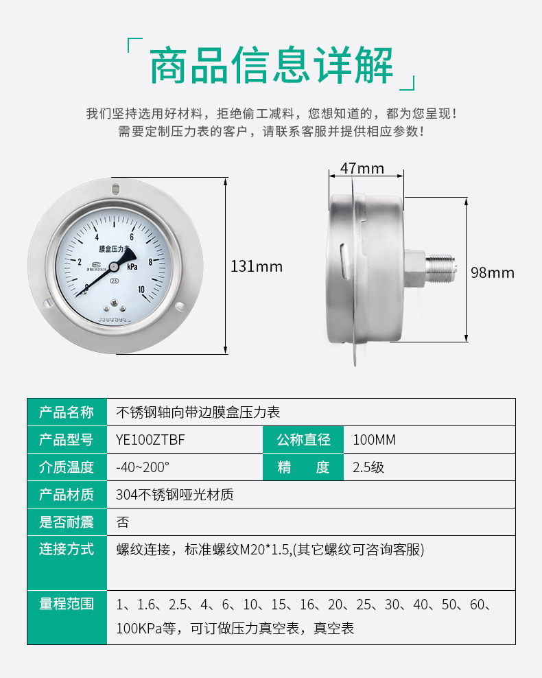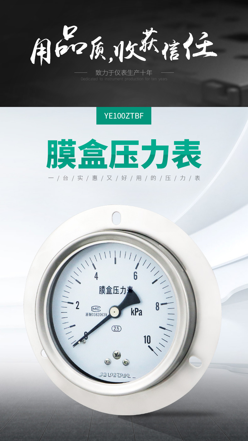 - What You Get: One YE100ZTBF membrane box pressure gauge with flanged bezel mount, backed by a one-year warranty, providing a dependable solution for your low pressure monitoring needs.