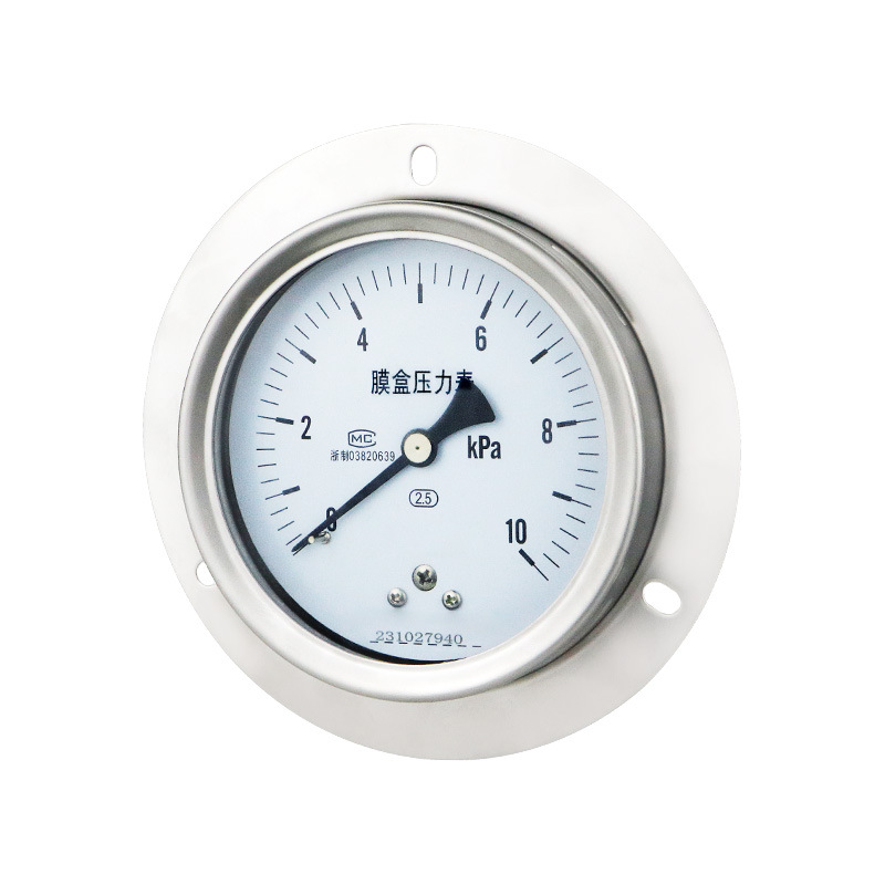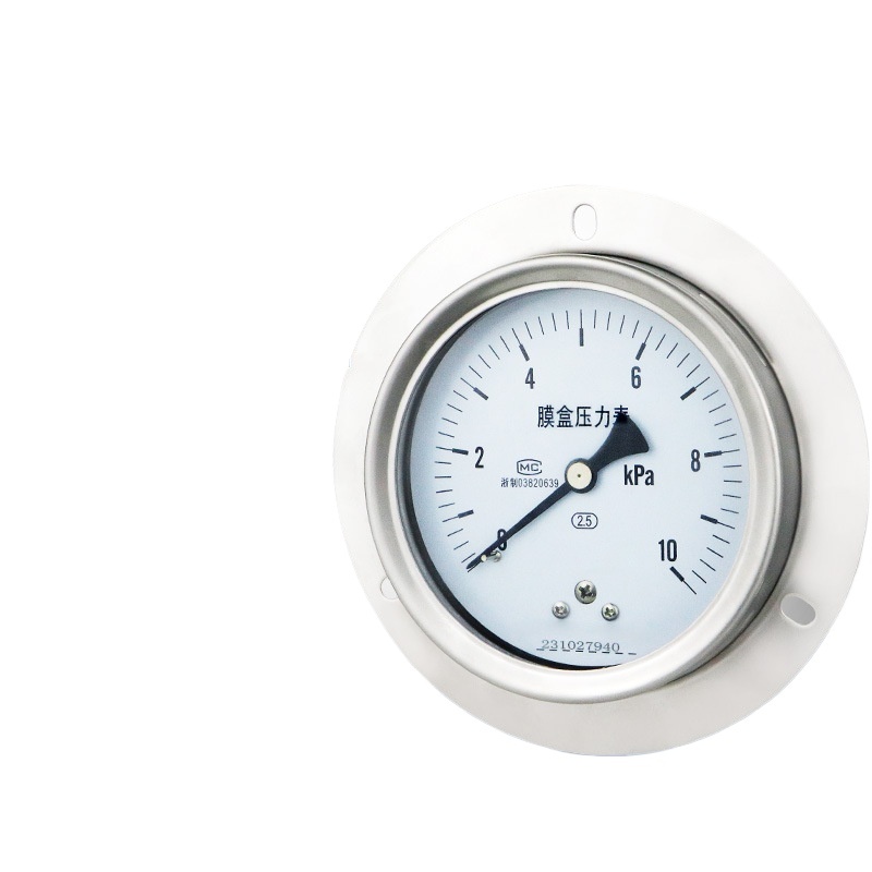 Membrane Box Pressure Gauge YE100ZTBF for Low Pressure Measurement (0-10kPa) with Flanged Bezel Mount