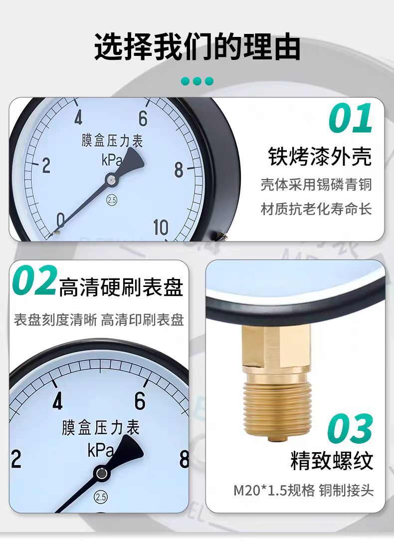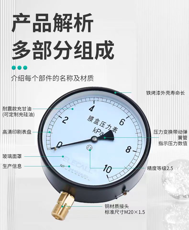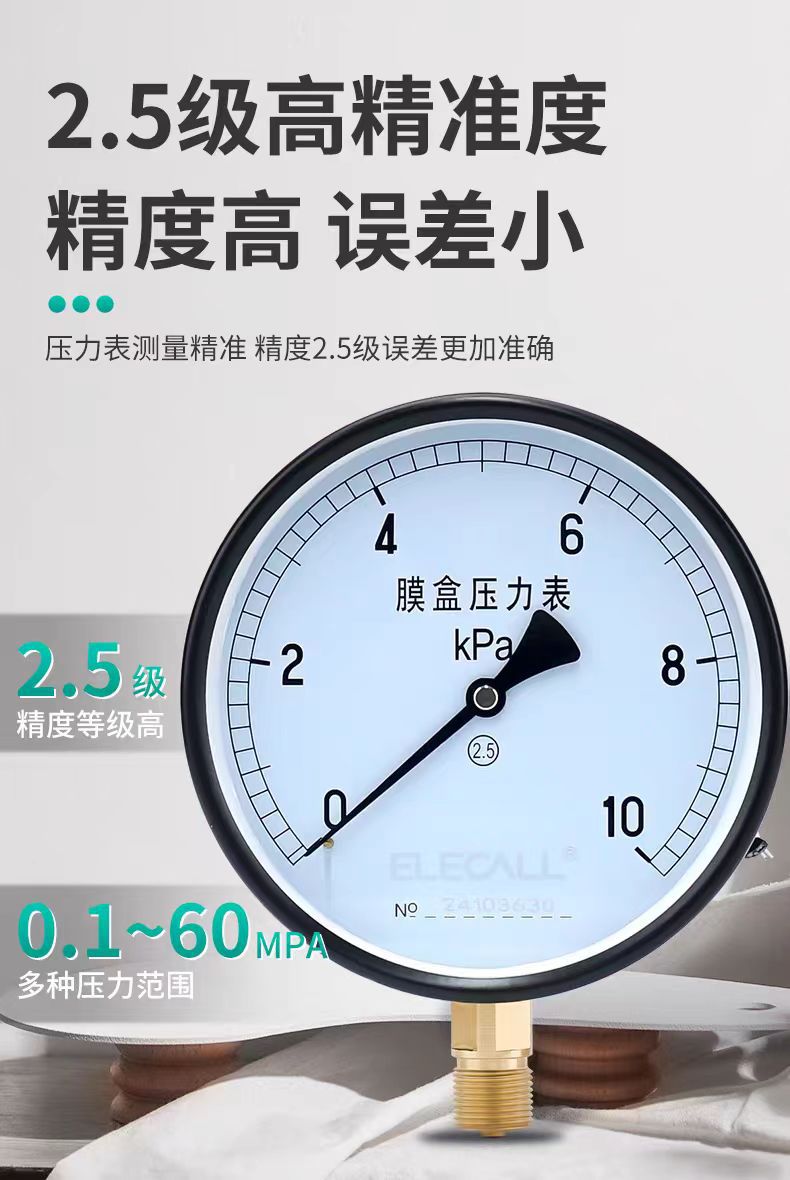 - Wide Compatibility: ELECALL YE-150 membrane pressure gauge with versatile M20*1.5 thread connection, suitable for a wide range of applications including water, oil, and gas pressure measurement.