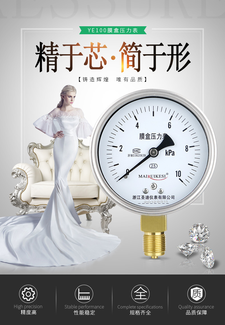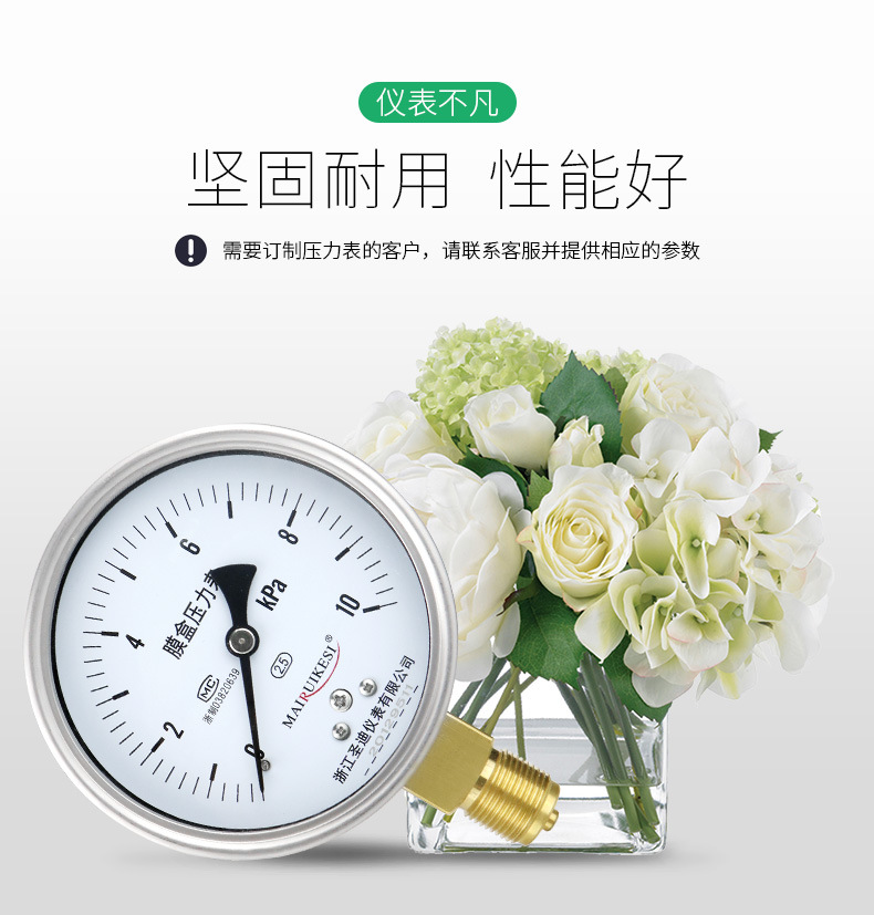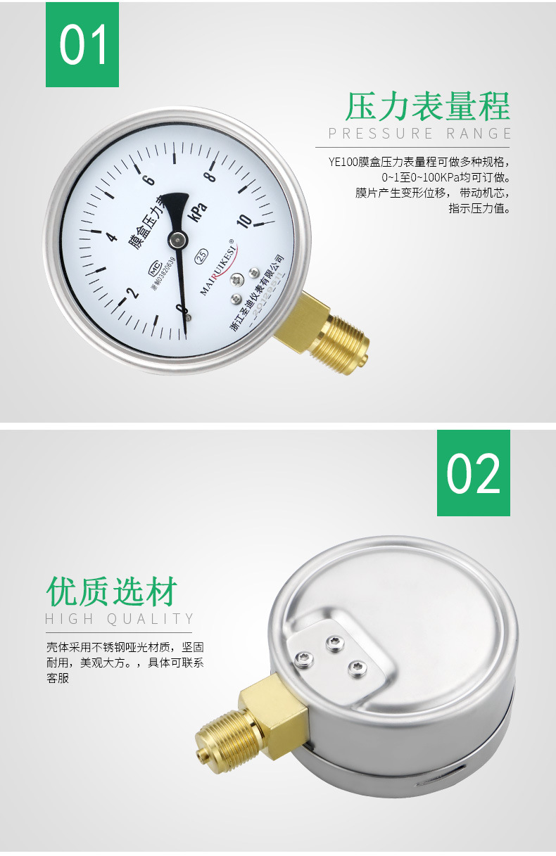 Membrane Pressure Gauge YE100 Stainless Steel Case with 10kPa Measurement for HVAC Systems