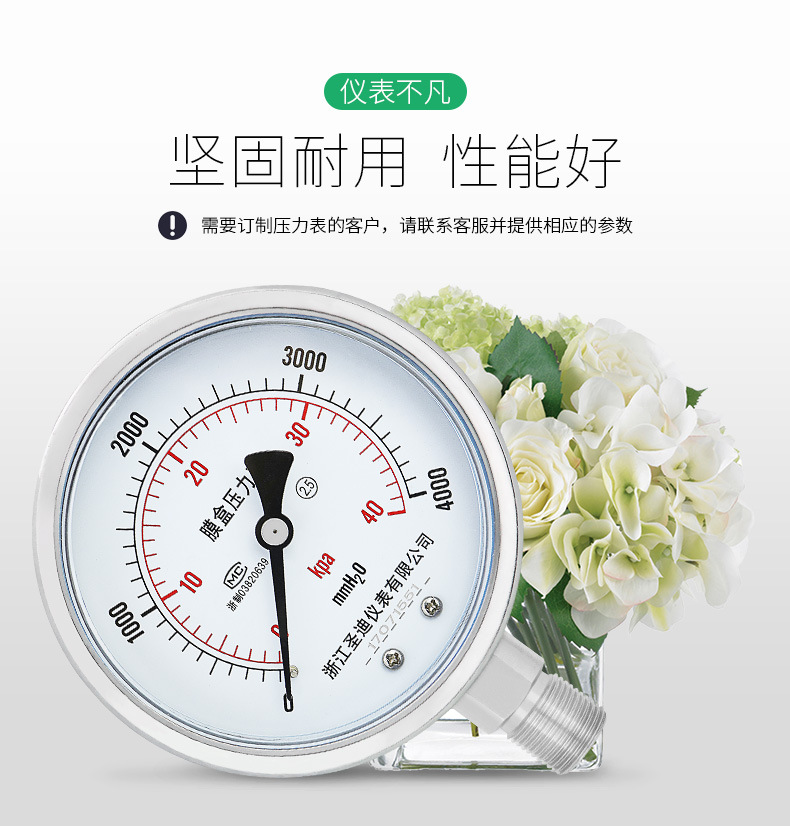 - Key Specs & Performance: Features a 100mm nominal diameter, 2.5 accuracy class, and clear KPa/mmH2O dual scale (up to 4000 KPa/40 mmH2O), providing precise and consistent pressure readings.