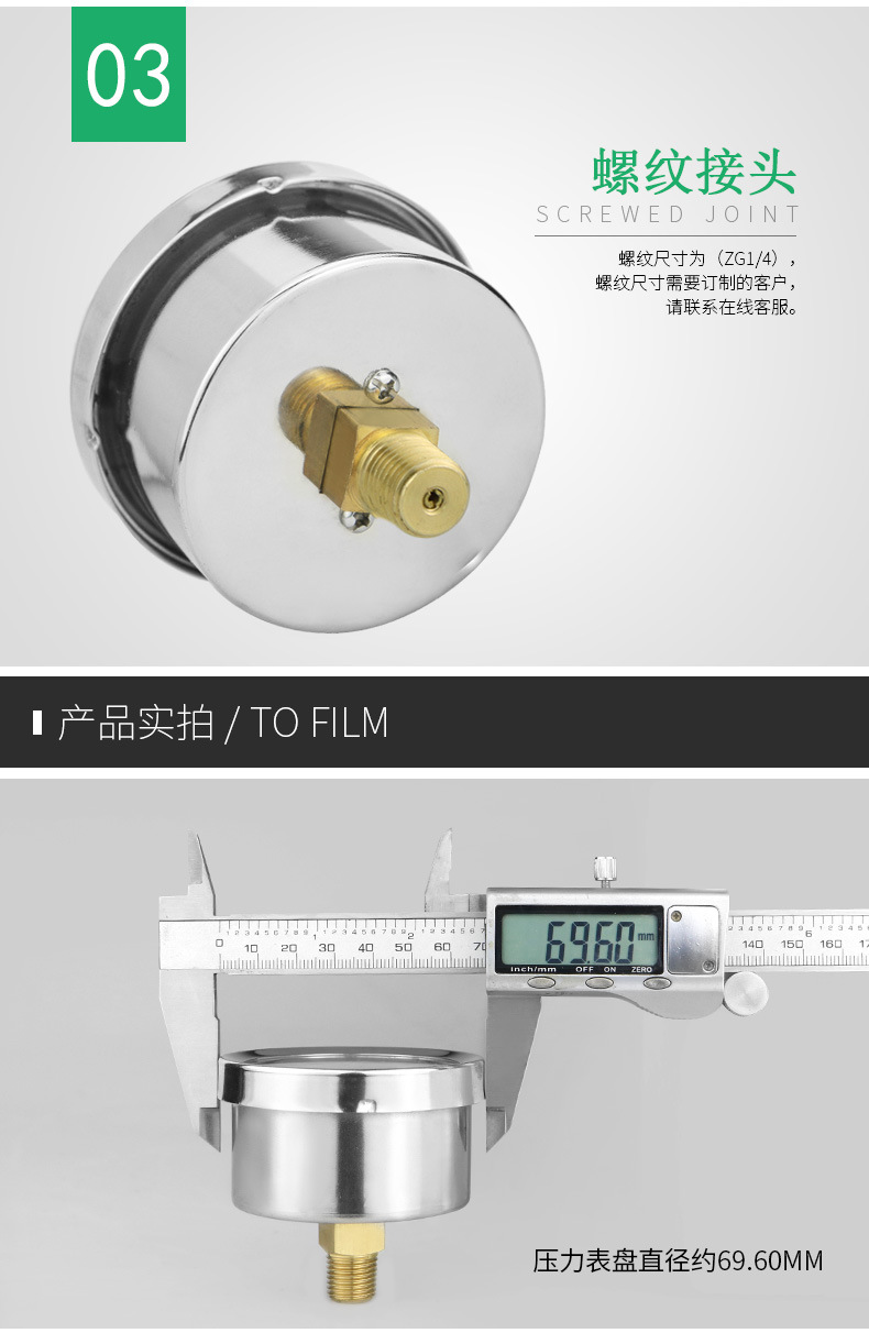 Guan Shan Y60BFZ/ZT Stainless Steel Pressure Gauge (0-1.6 MPa, 60mm Diameter, 2.5 Accuracy) for Water Oil Gas HVAC Systems