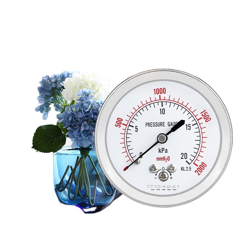 Membrane Pressure Gauge YE60Z Axial Bezel-less Stainless Steel Shell with Zero Adjustment Screw 60mm KPa/mmH2O for Gas Meter