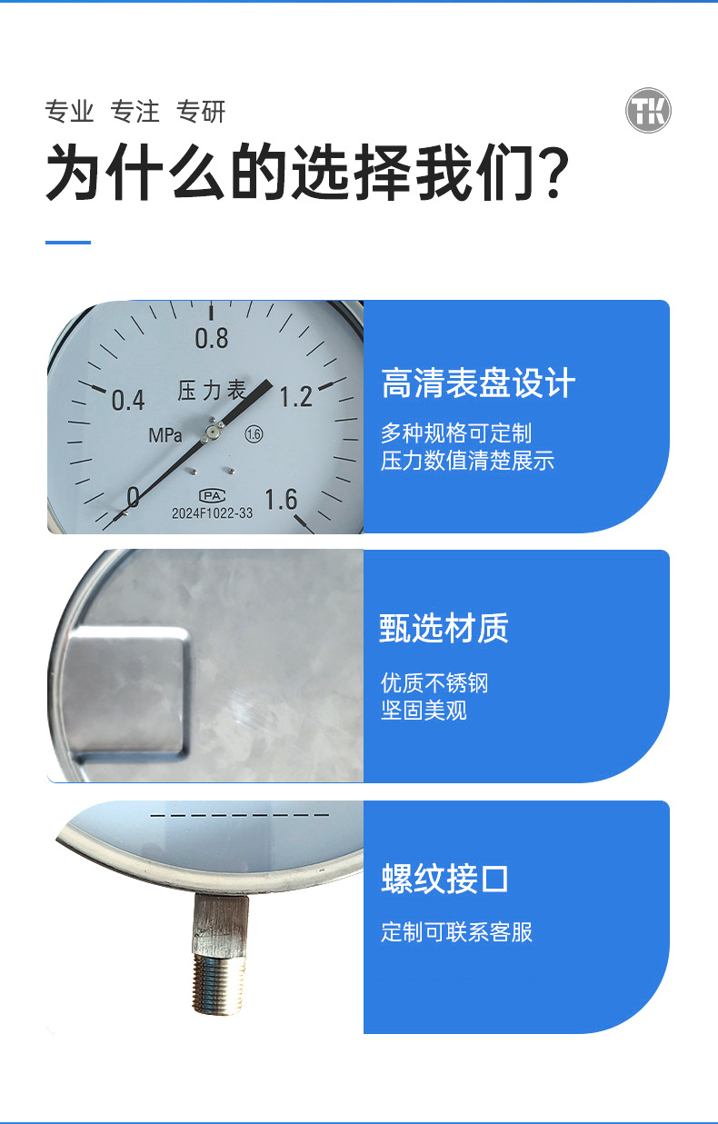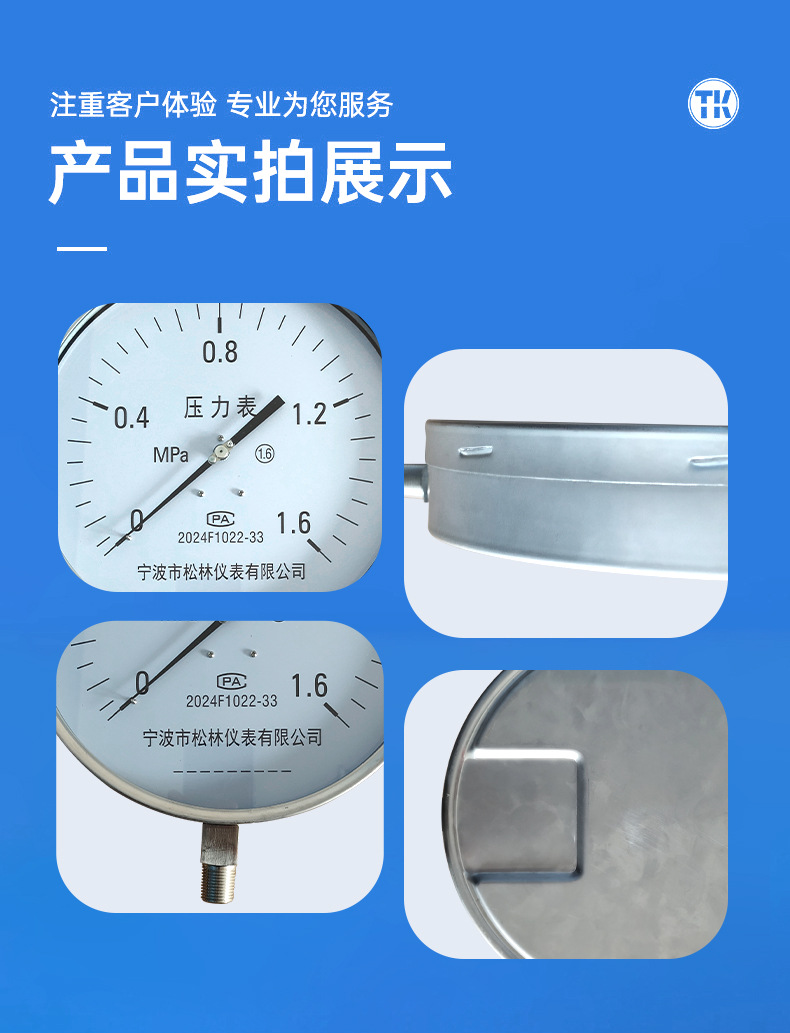Hongqi Y-60 Pressure Gauge Water Pressure Vacuum Negative Pressure Meter for HVAC Firefighting Tire Pressure