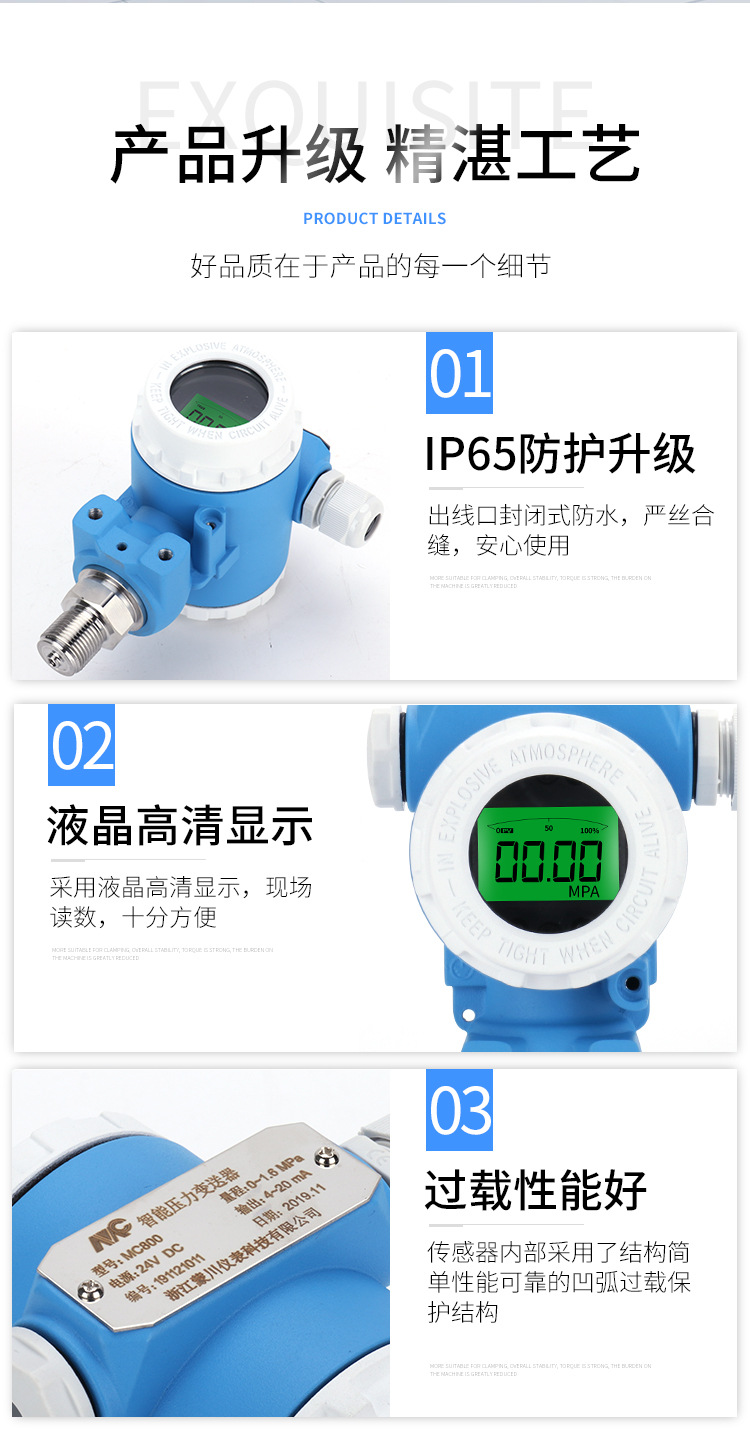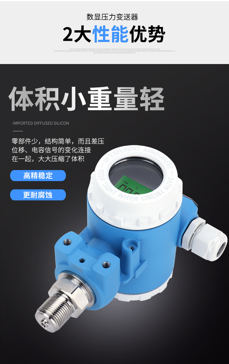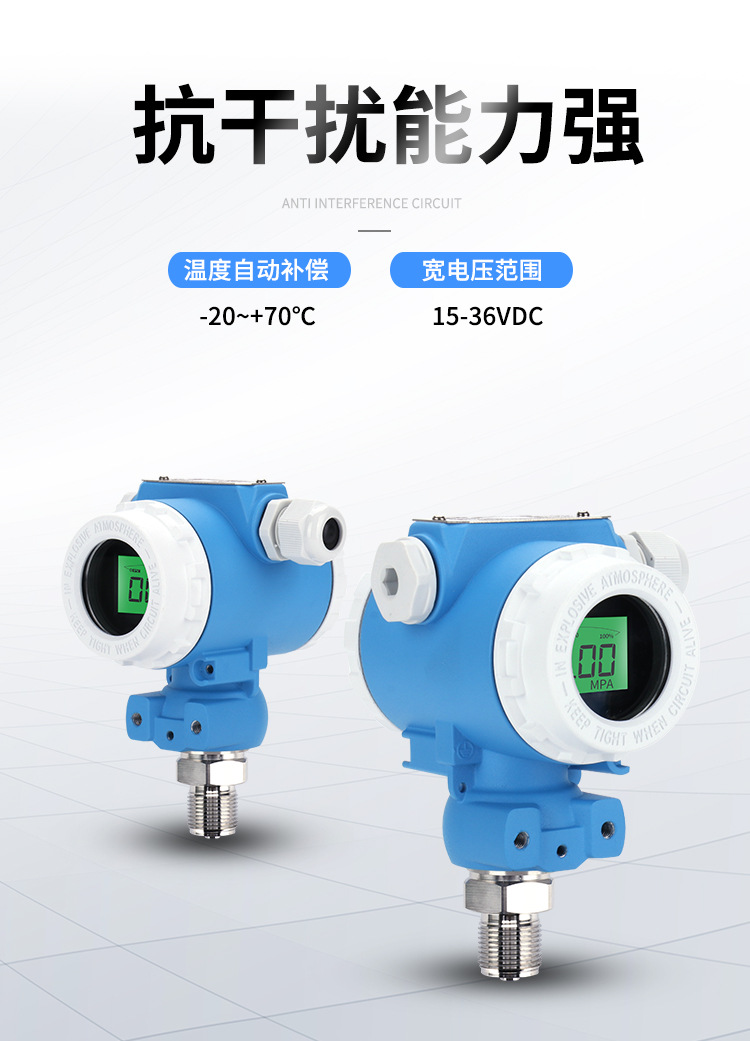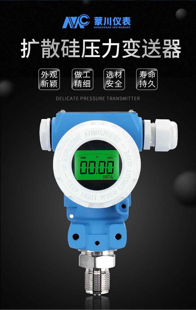 Mengchuan Instrument 2088 Explosion-Proof Pressure Transmitter 4-20mA High Precision LCD Digital Display Diffusion Silicon Pressure Sensor for HVAC Systems