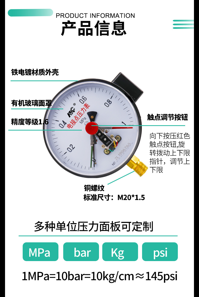 - Key Specs & Performance: YXC150 model for precise pressure control, with a range from -0.1 to 100 MPa and 380V/30VA electrical contacts for reliable upper/lower limit control.
