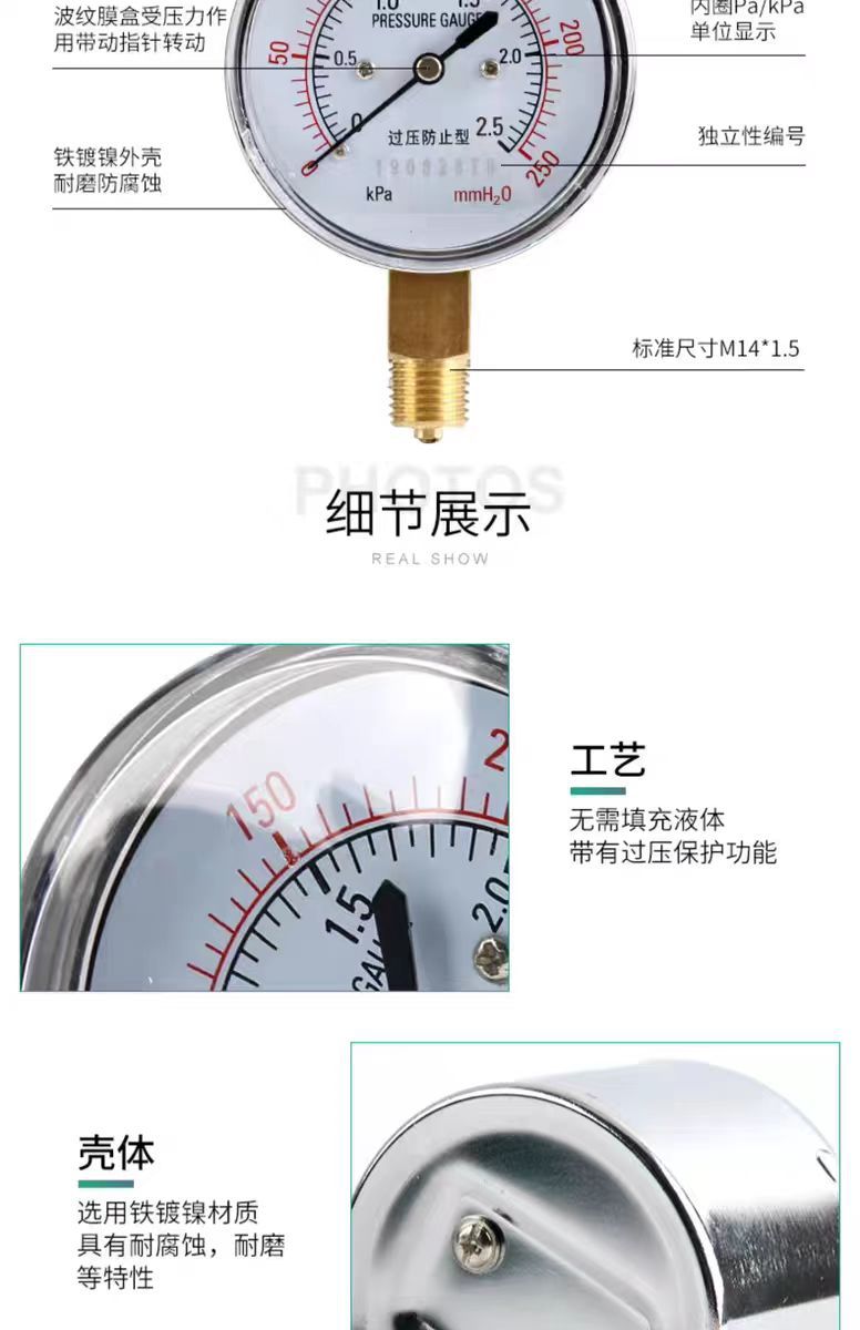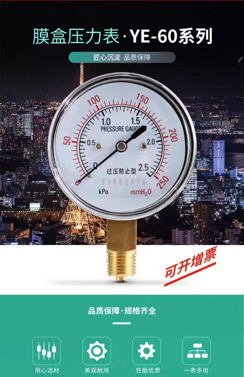 Micro Pressure Gauge YE-60 (0-2.5Kpa) for Water, Oil, Gas Pressure Measurement