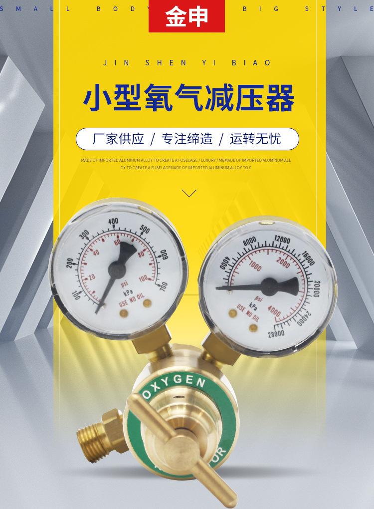 Mini Oxygen Pressure Reducer Anti-Vibration Brass Regulator for Gas Welding Cutting