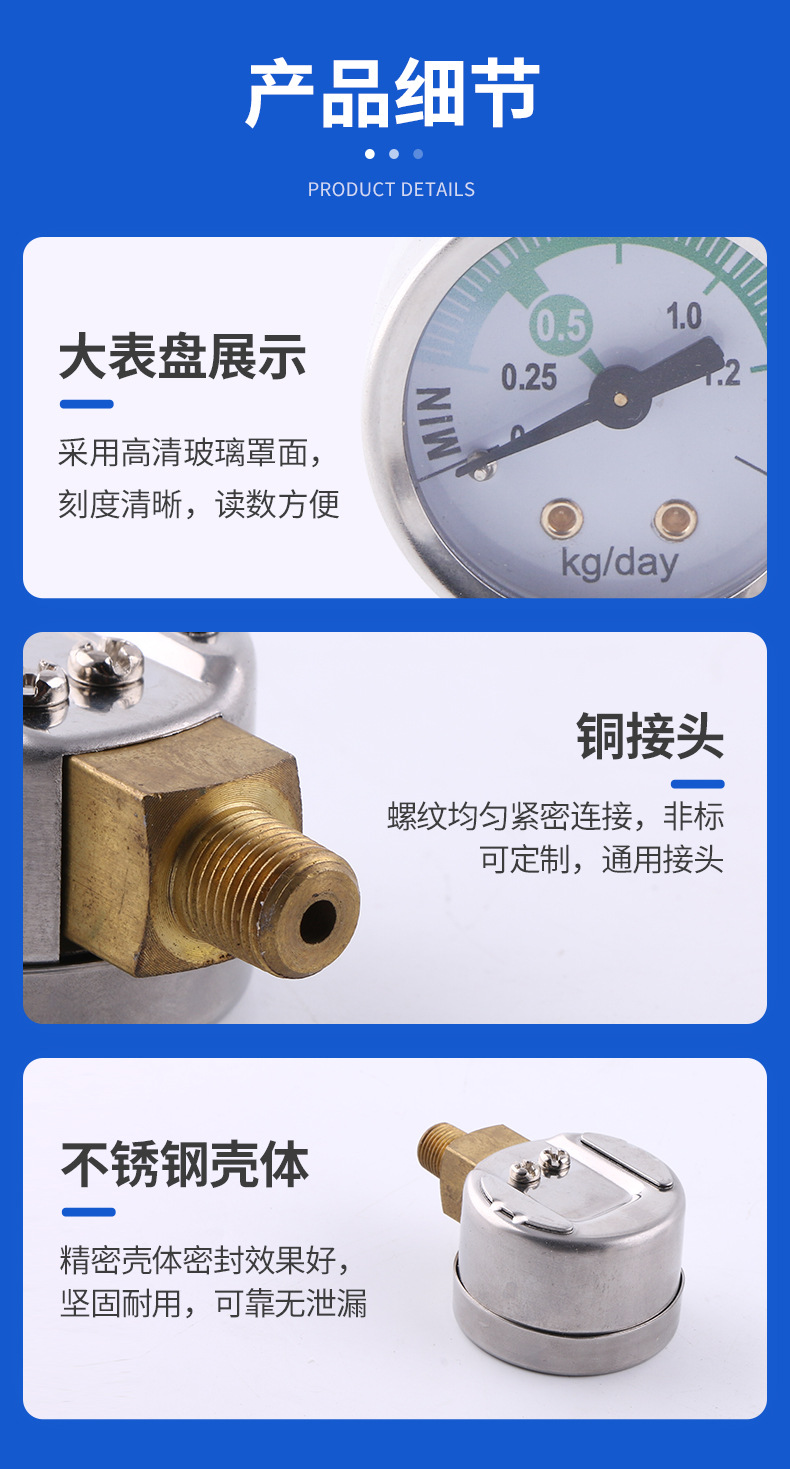 - Key Specs & Performance: Precision 40mm dial with a 0-1.2 kg/day measurement range and ±2.5% accuracy, providing reliable readings for system monitoring.