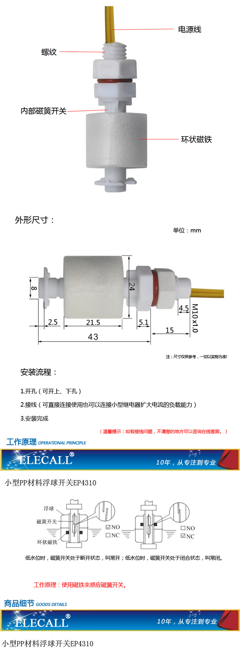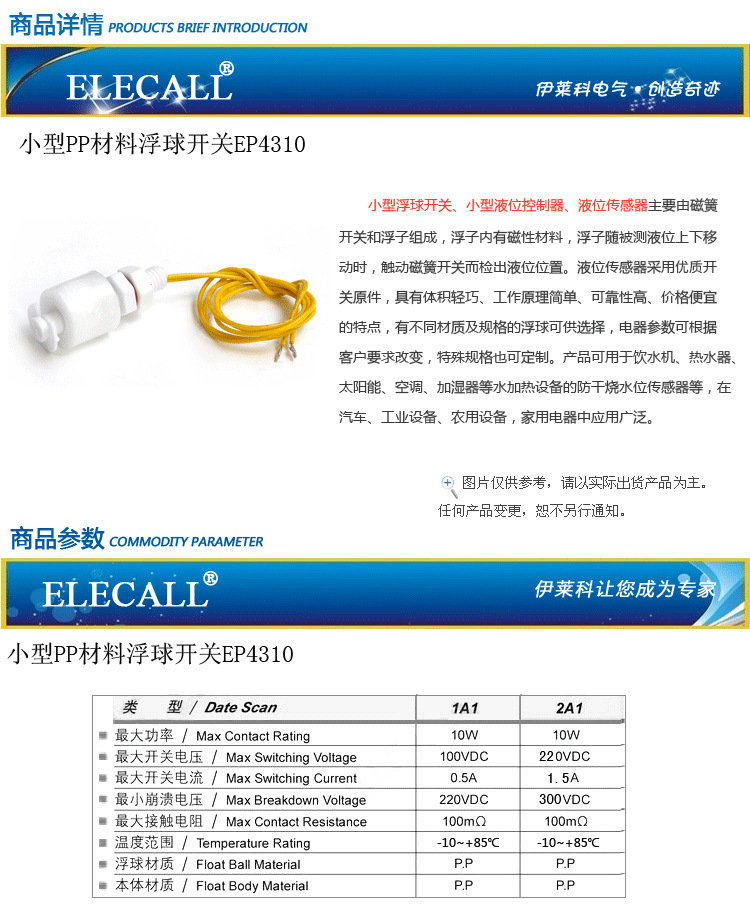 - What You Get: Includes one ELECALL PP Liquid Level Float Switch, a reliable solution for automatic liquid level sensing, backed by our commitment to quality and customer satisfaction.