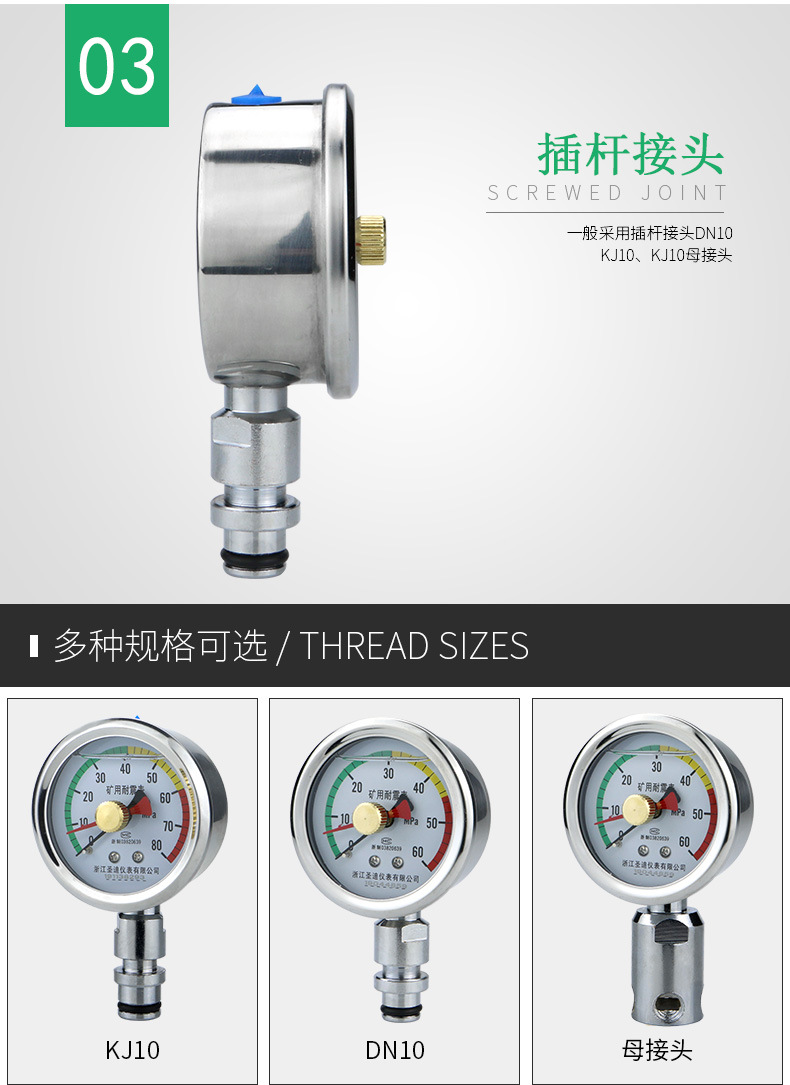 - Easy Installation: Equipped with a fixed thread connection, this gauge offers straightforward and secure installation for various mining equipment and systems.