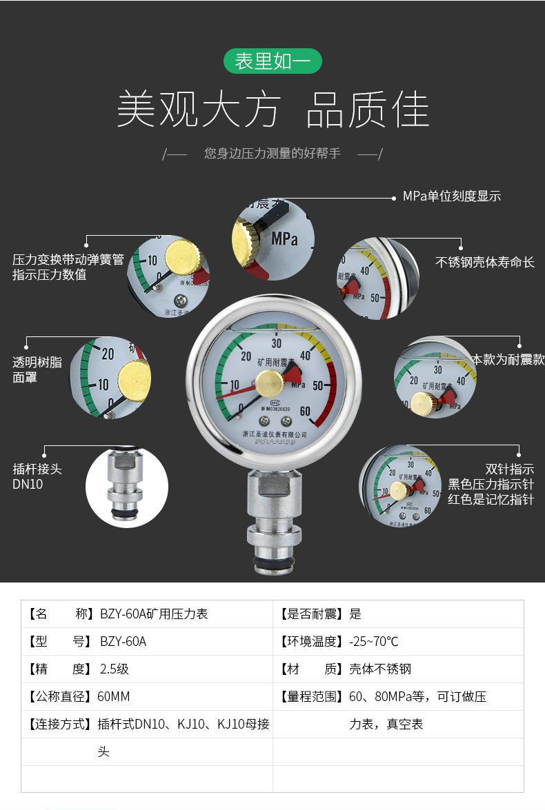 - Wide Compatibility: Designed for mining applications, this BZY-60A pressure gauge is suitable for environments requiring explosion-proof and shock-resistant measurement.