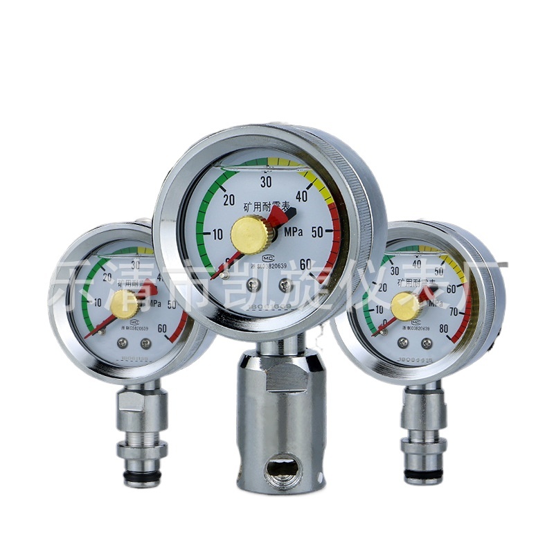 Mining Pressure Gauge Dual-Needle Shockproof (60mm Diameter, 80MPa) for Underground Coal Mining