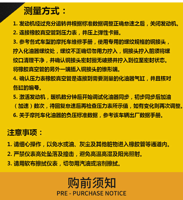 Motorcycle Carburetor Four Cylinder Synchronizer Vacuum Gauge for HVAC system